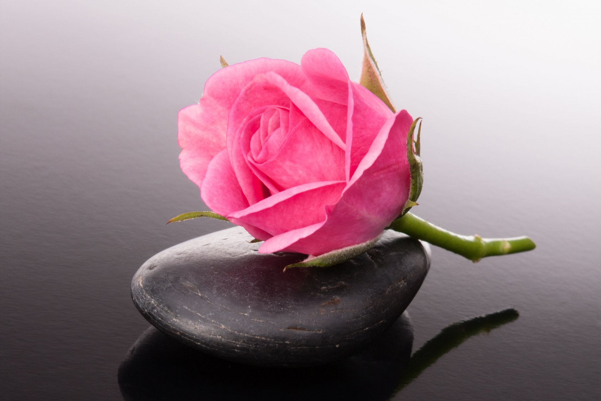 Knospe einer generischen Rose auf einem Stein