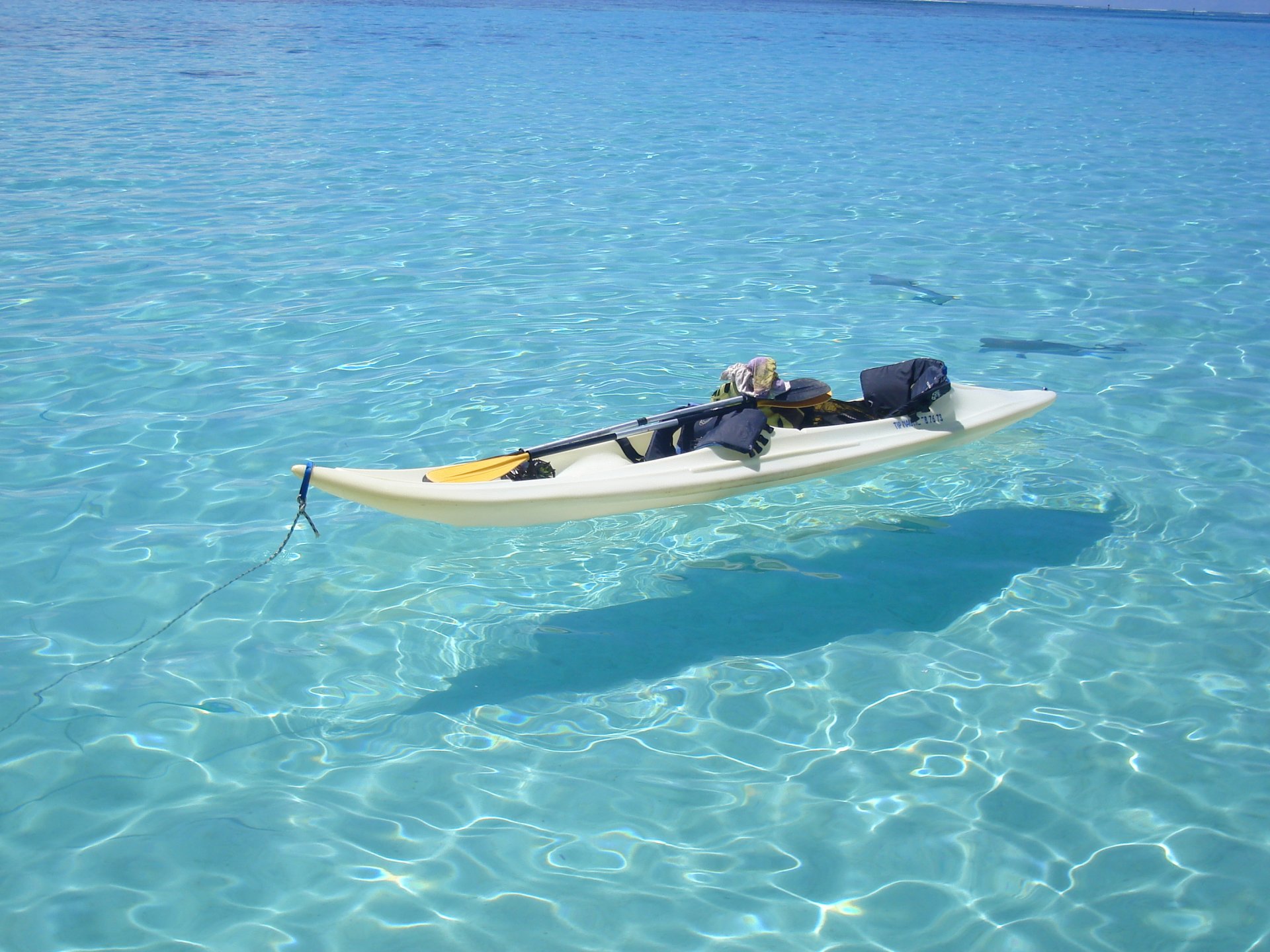 Boot mit Paddel im kristallklaren Wasser