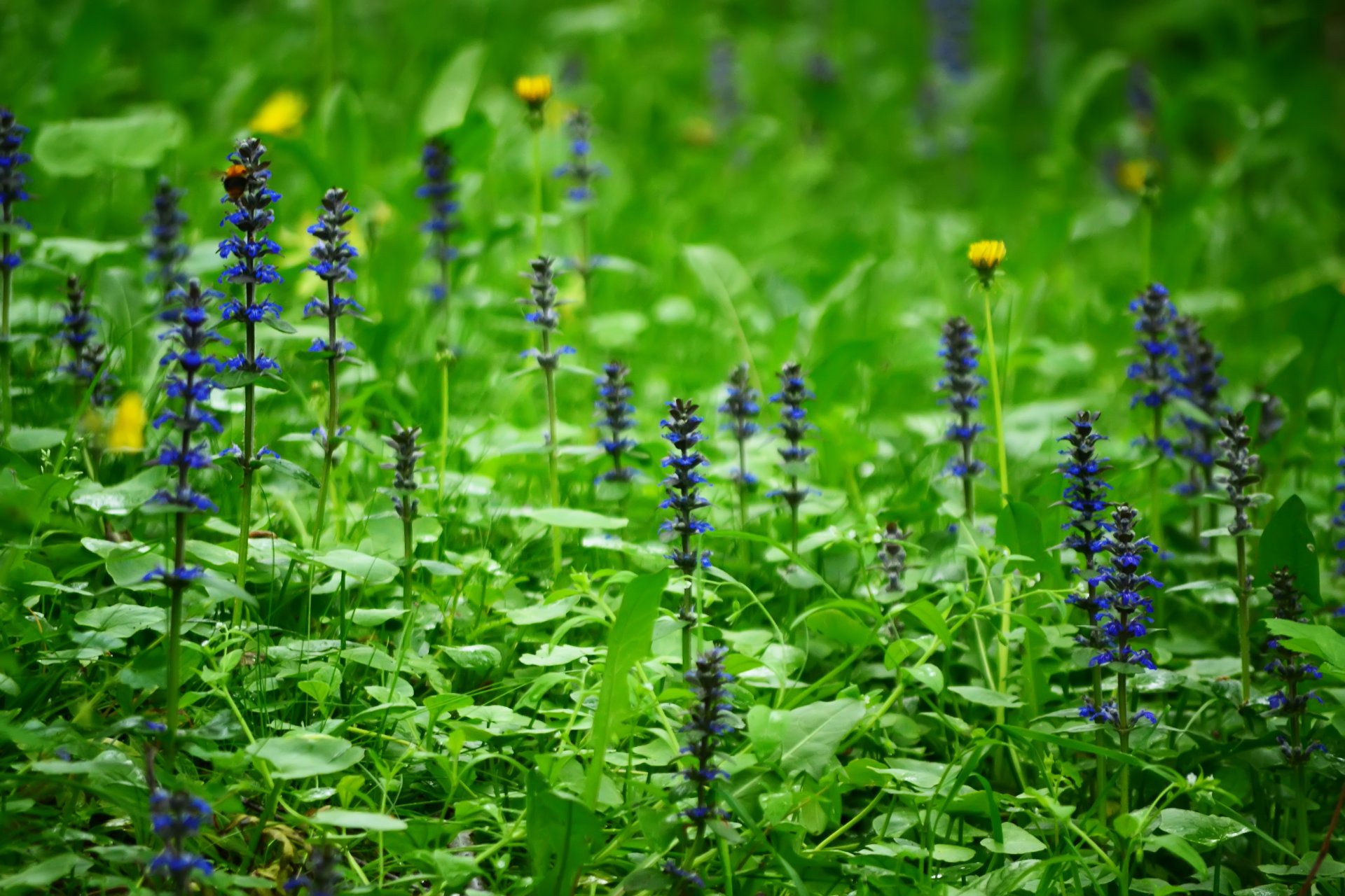 Ein Kreis aus Steinen auf einer grünen Wiese ist weiß