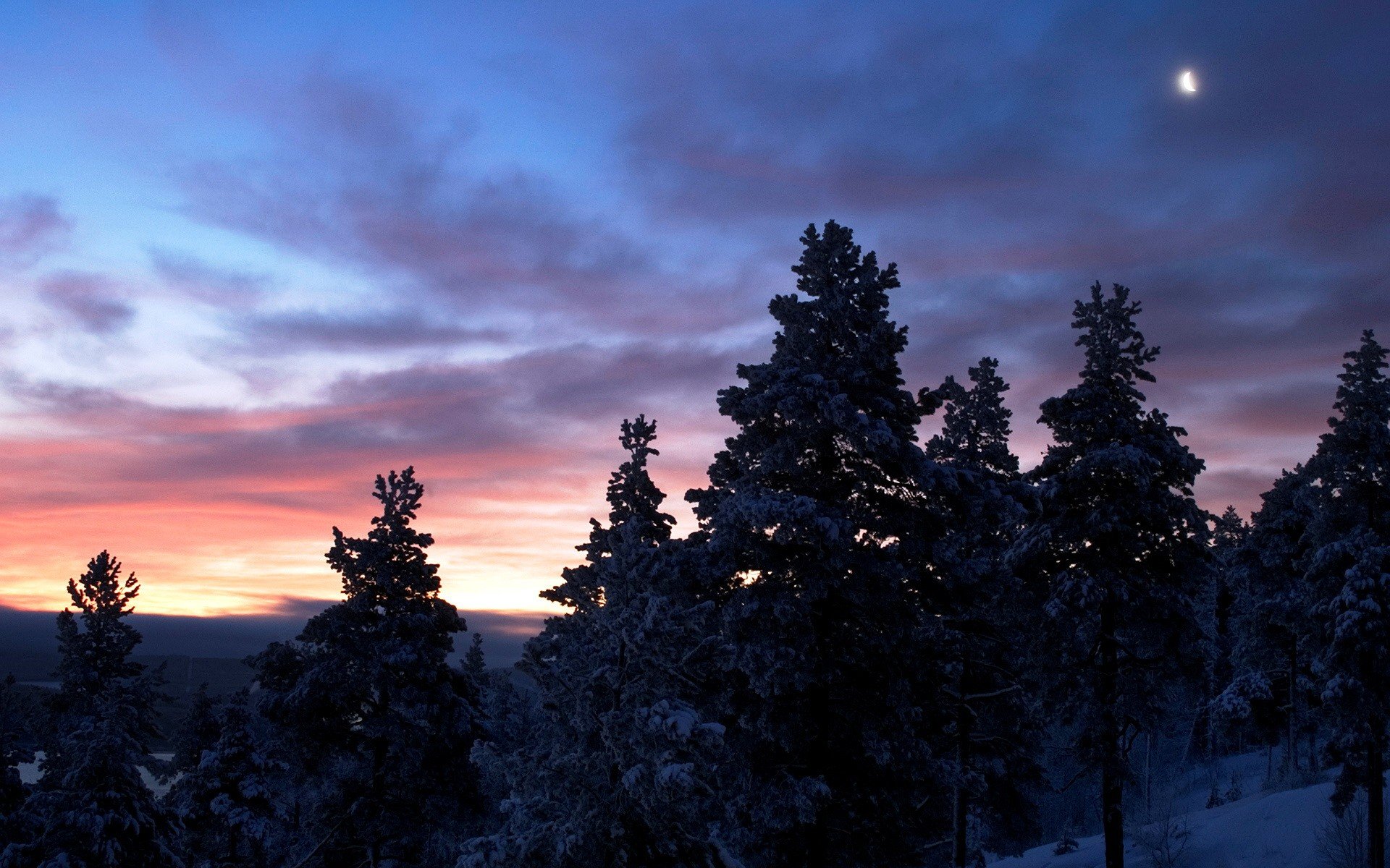 Bäume Sonnenuntergang Winter Schnee