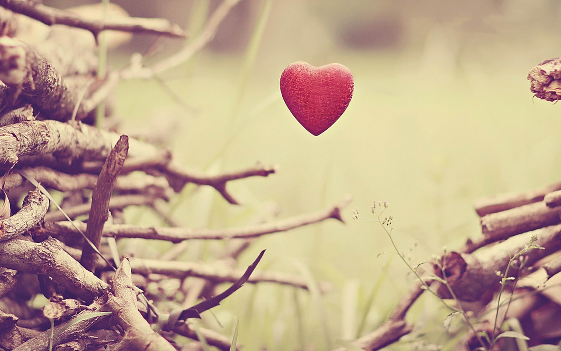 Ein Herz in der Schwerelosigkeit schwebt in einem ungewöhnlichen Bild zwischen Zweigen