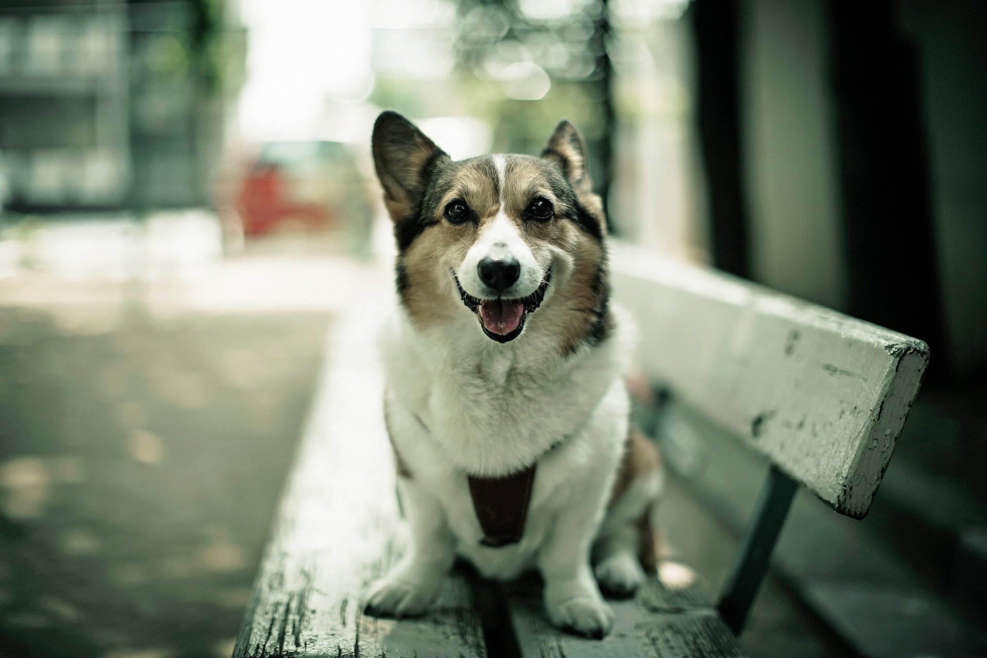 Die Katze liegt auf einer Bank vor dem Hintergrund des Rasens