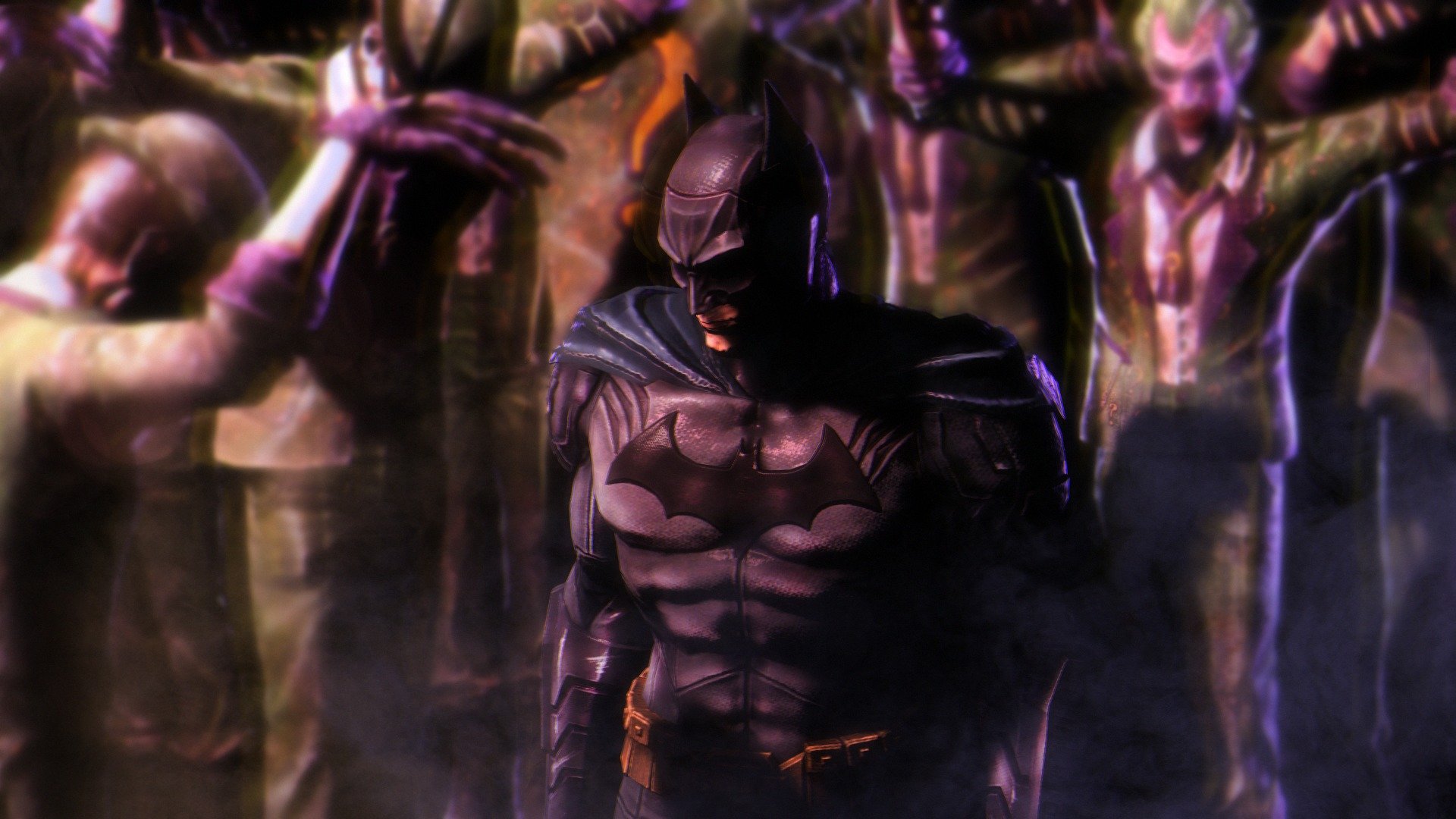 Batman vor dem Hintergrund seines leistungsstarken Autos