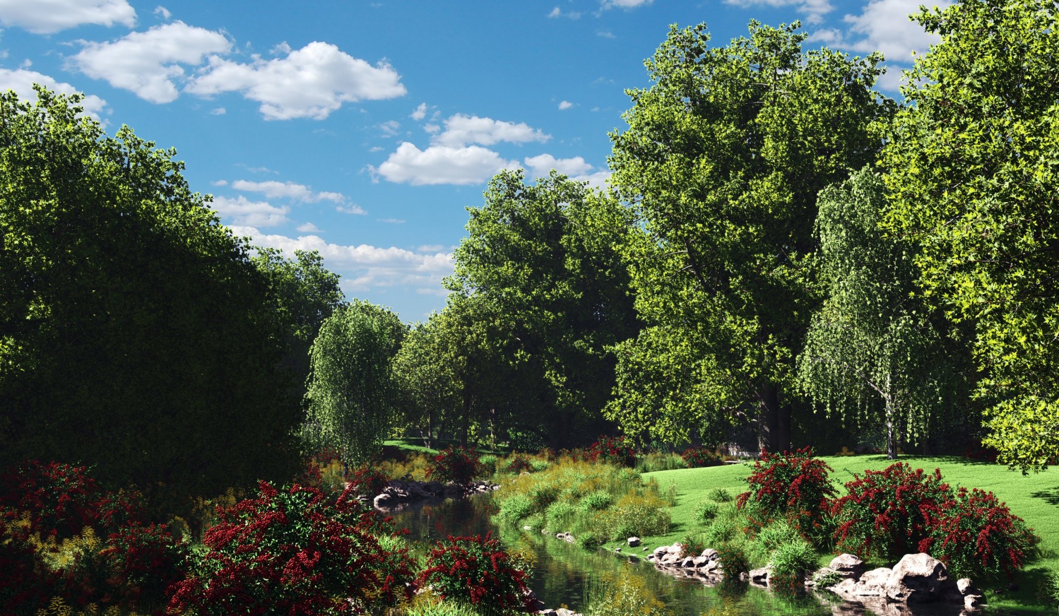 Wunderbare Natur Wald, Bach, Blumen auf der Wiese