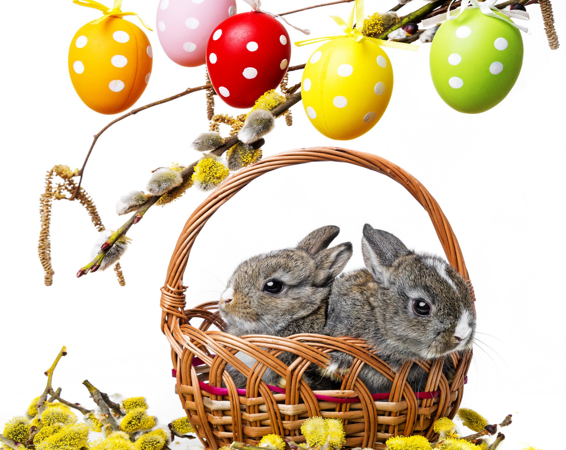 Ostereier auf dem Rasen mit einer Kaninchenfigur
