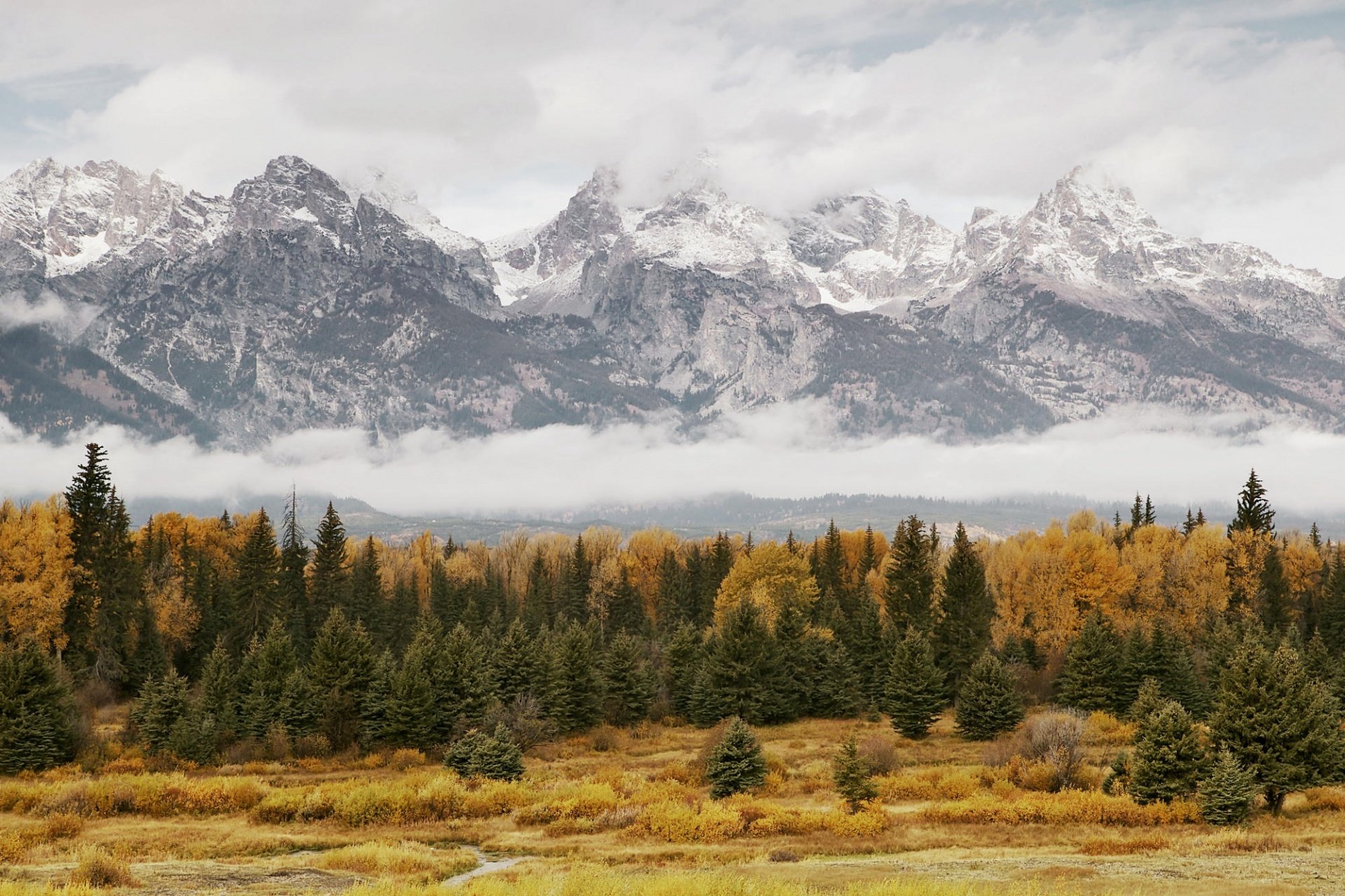 Fthulpen vor dem Hintergrund der blauen Berge und des Himmels