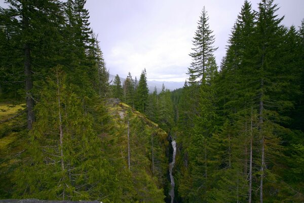 Der Bergfluss fließt in die Schlucht und gewinnt seine Stärke in den Bergen