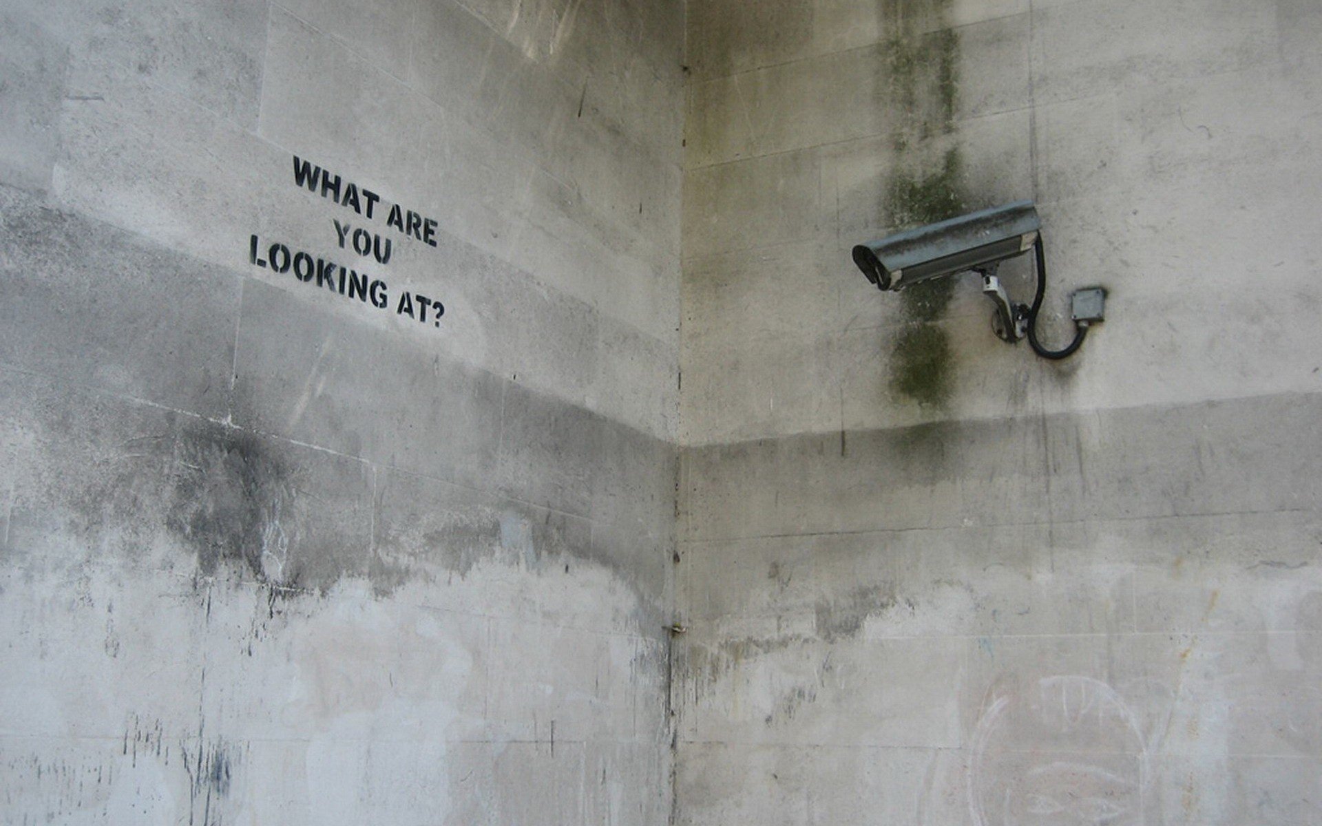 Inschrift auf Betonwand mit Überwachungskamera