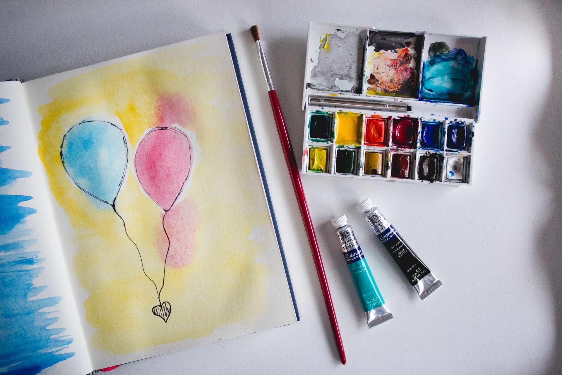 Eine blaue und rosa Perle mit Farben zeichnen