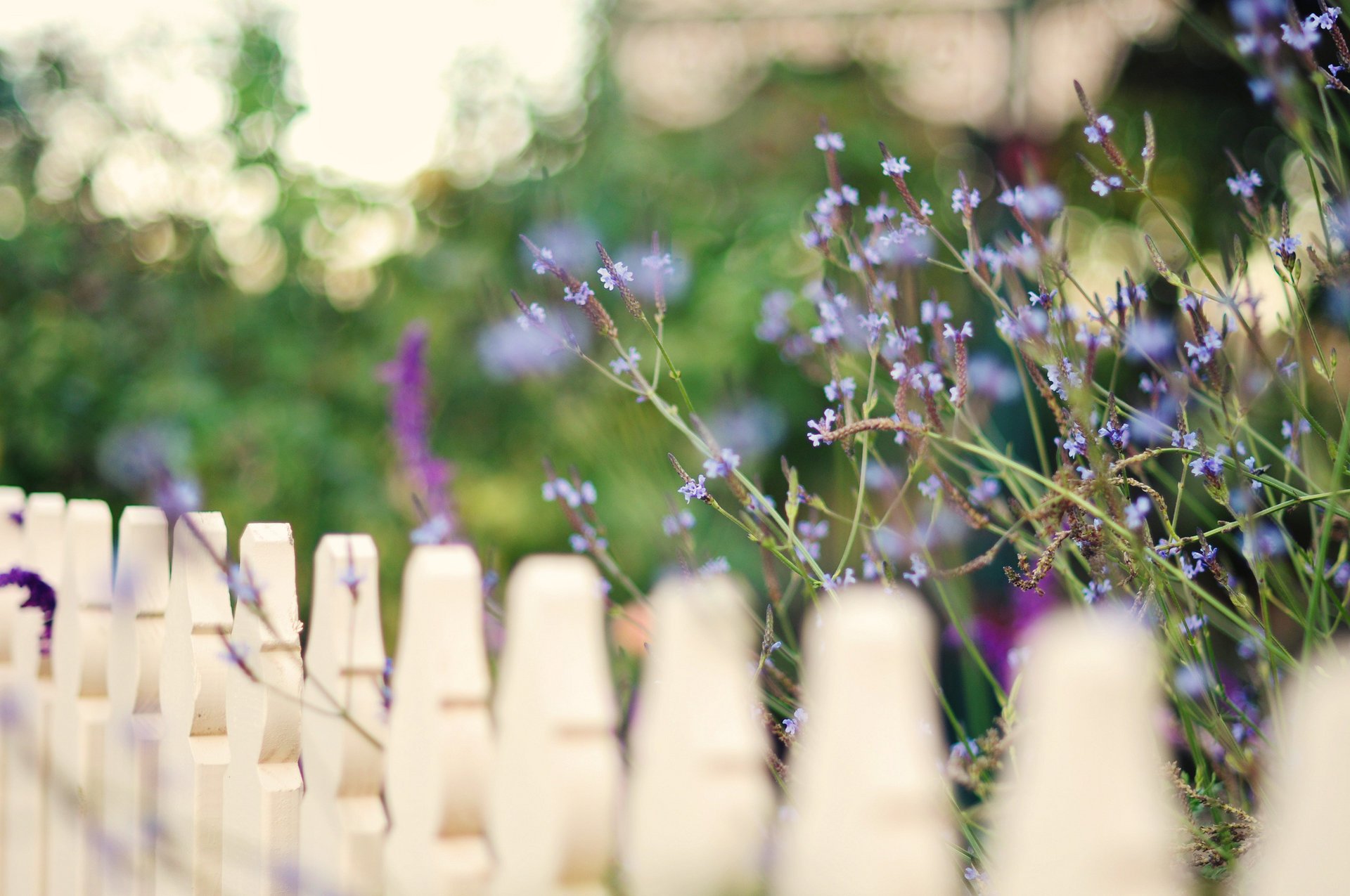 Blaue Blumen wachsen am Zaun