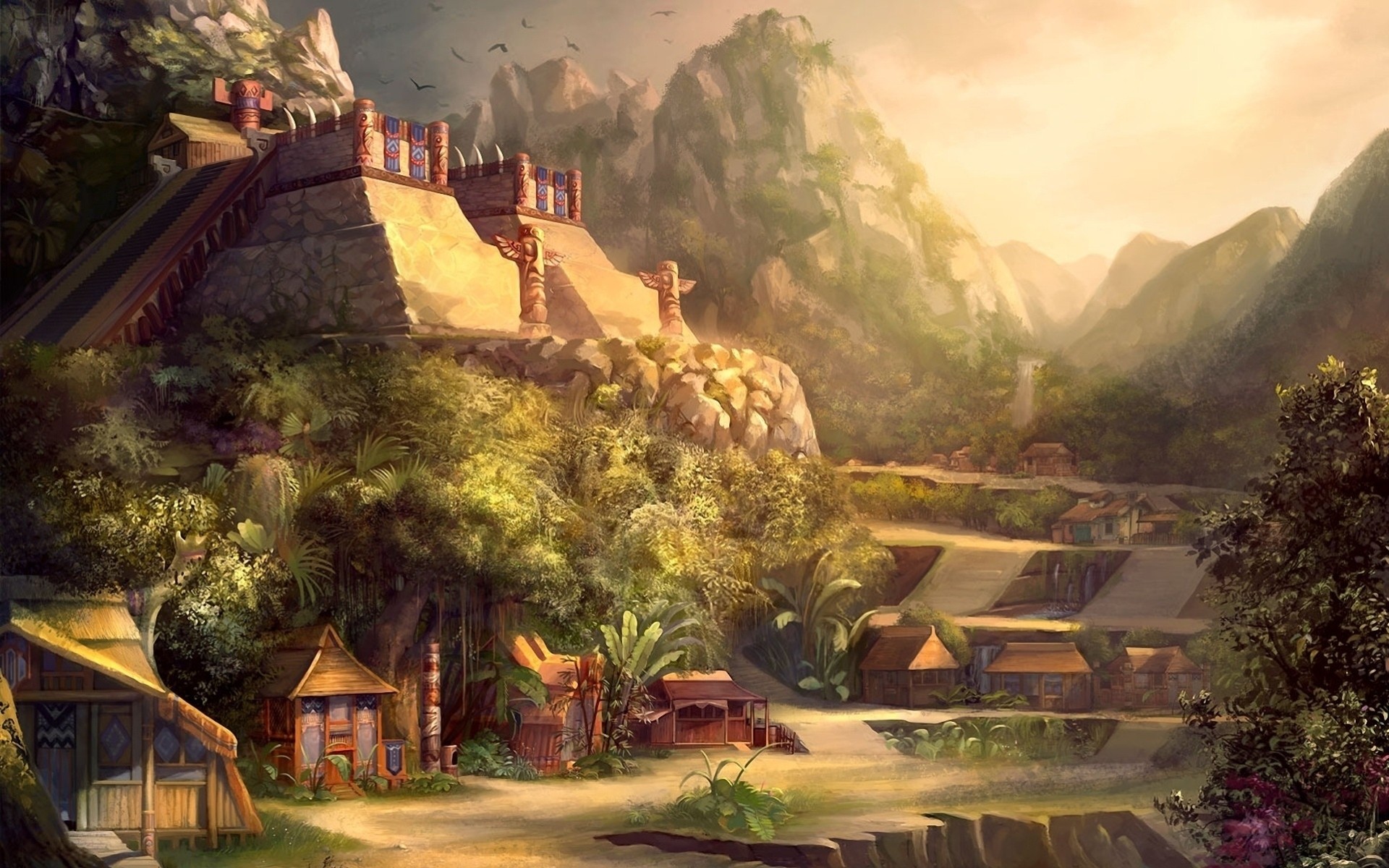 Ein peruanisches Dorf mit einer Pyramide im Dschungel