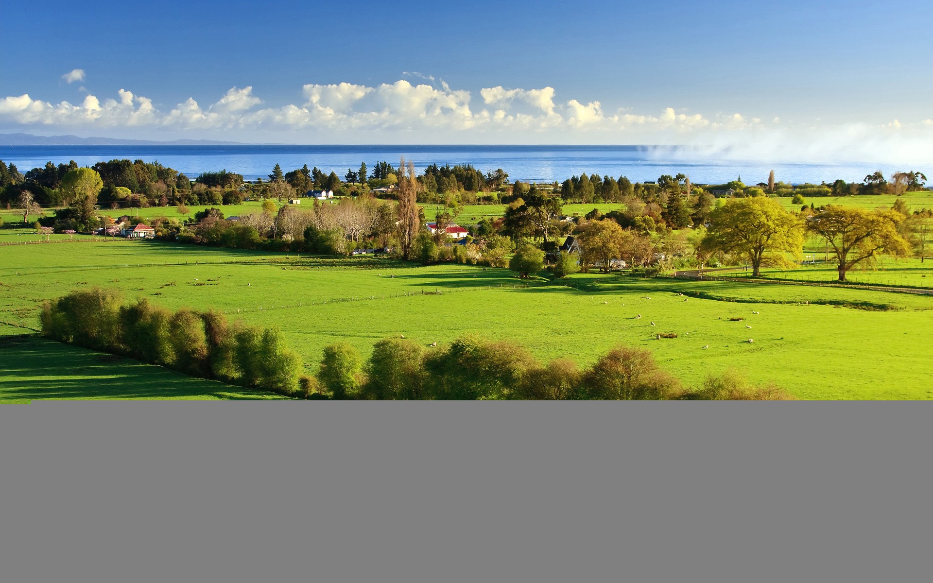 Blaues Meer mit Blick auf grünes Gras mit schönen Bäumen