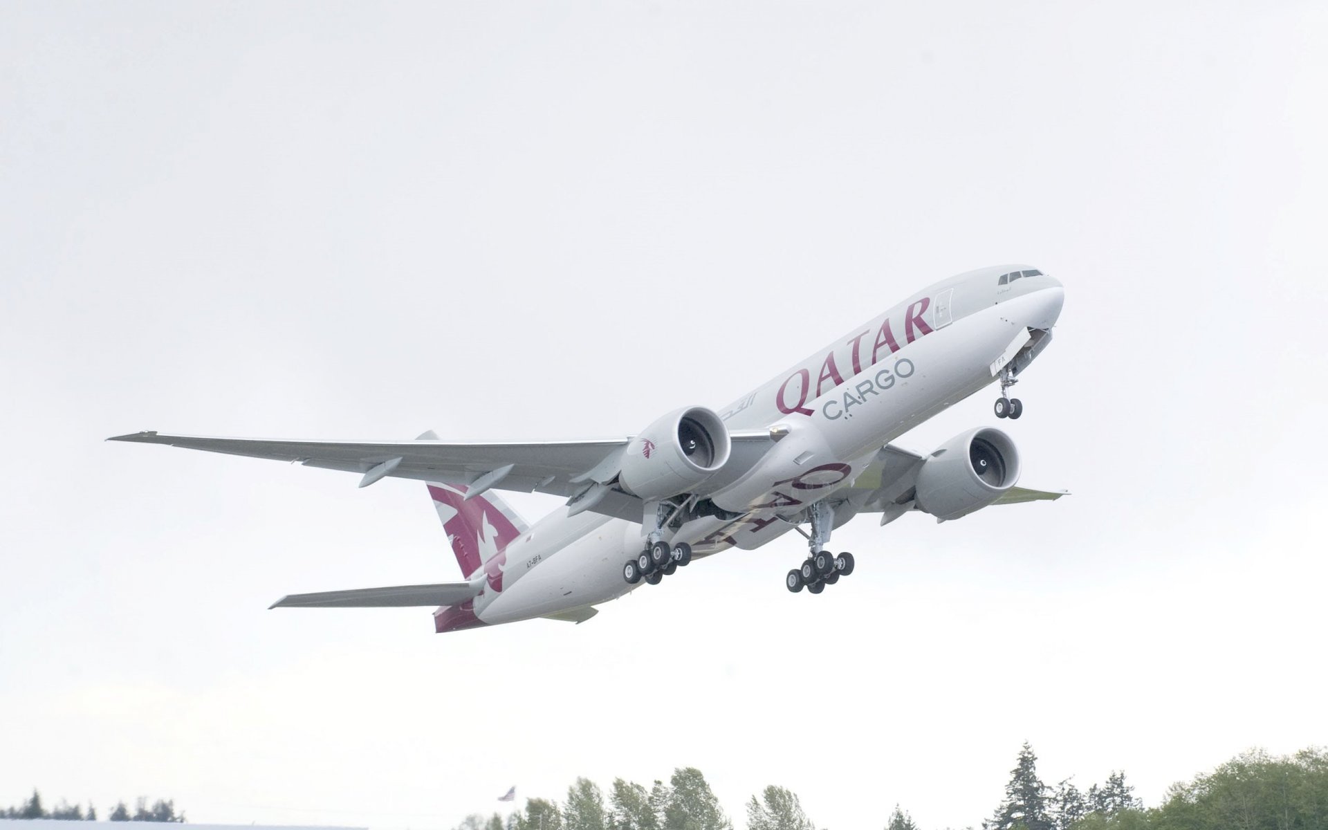 Ein Boeing-Militärflugzeug fliegt in einem satten blauen Himmel