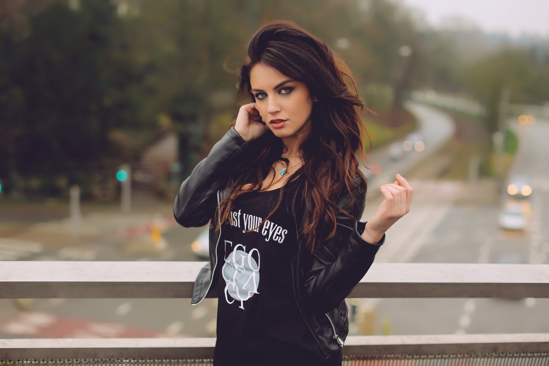 Mädchen auf dem Hintergrund des Maschinenflusses