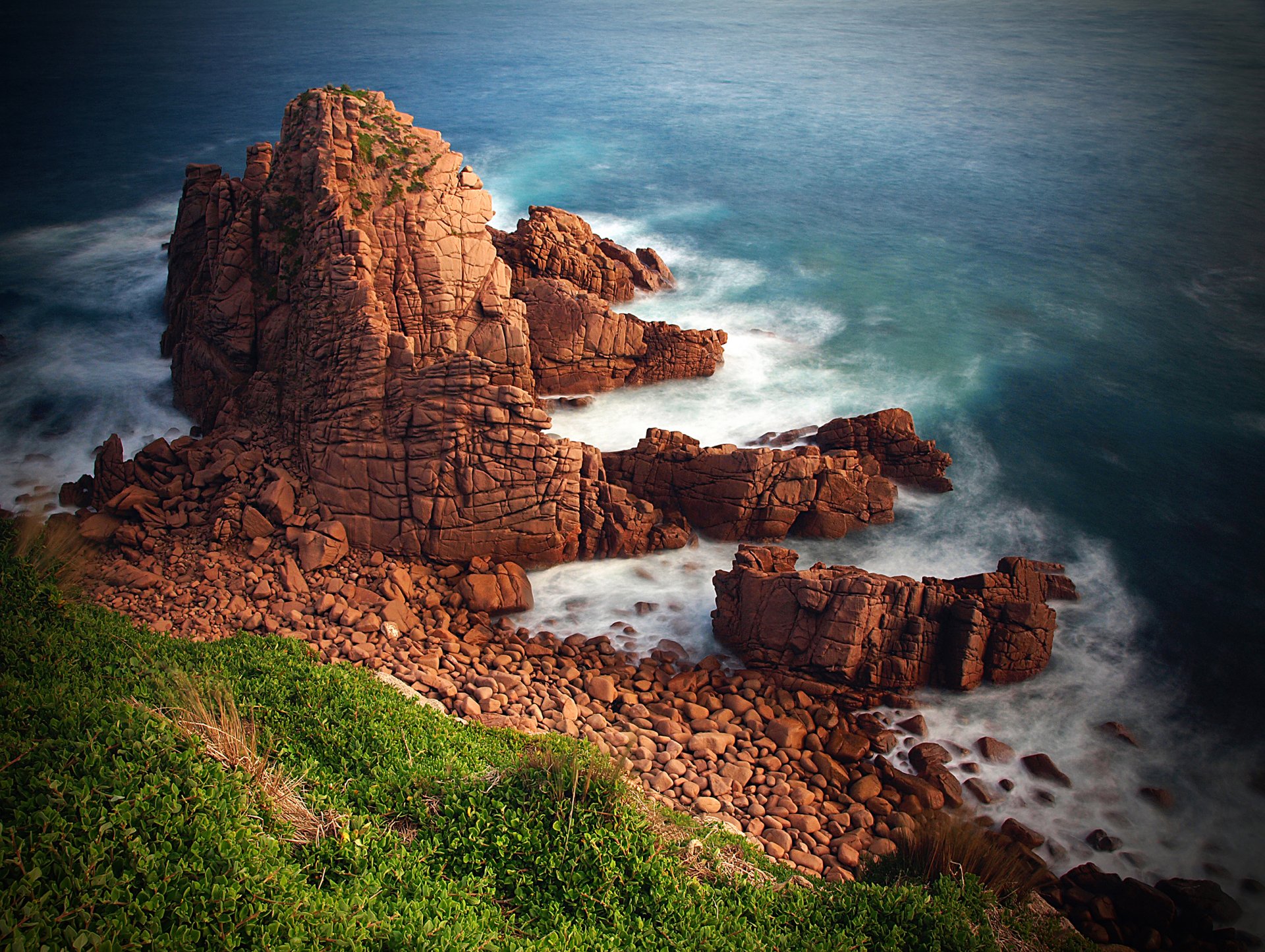 Die Reflexion der Felsen im Meer bei Sonnenuntergang