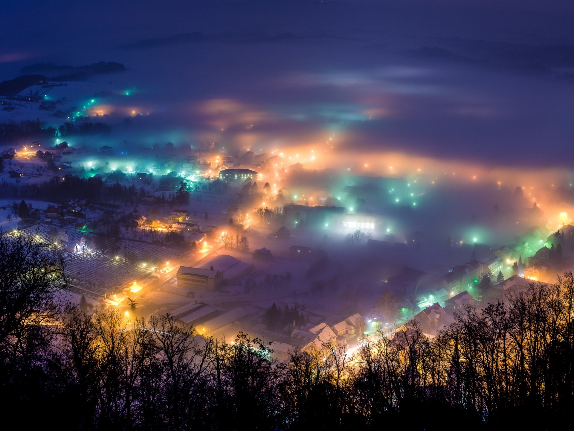 Panorama der Wolkenkratzer von New York aus der Höhe