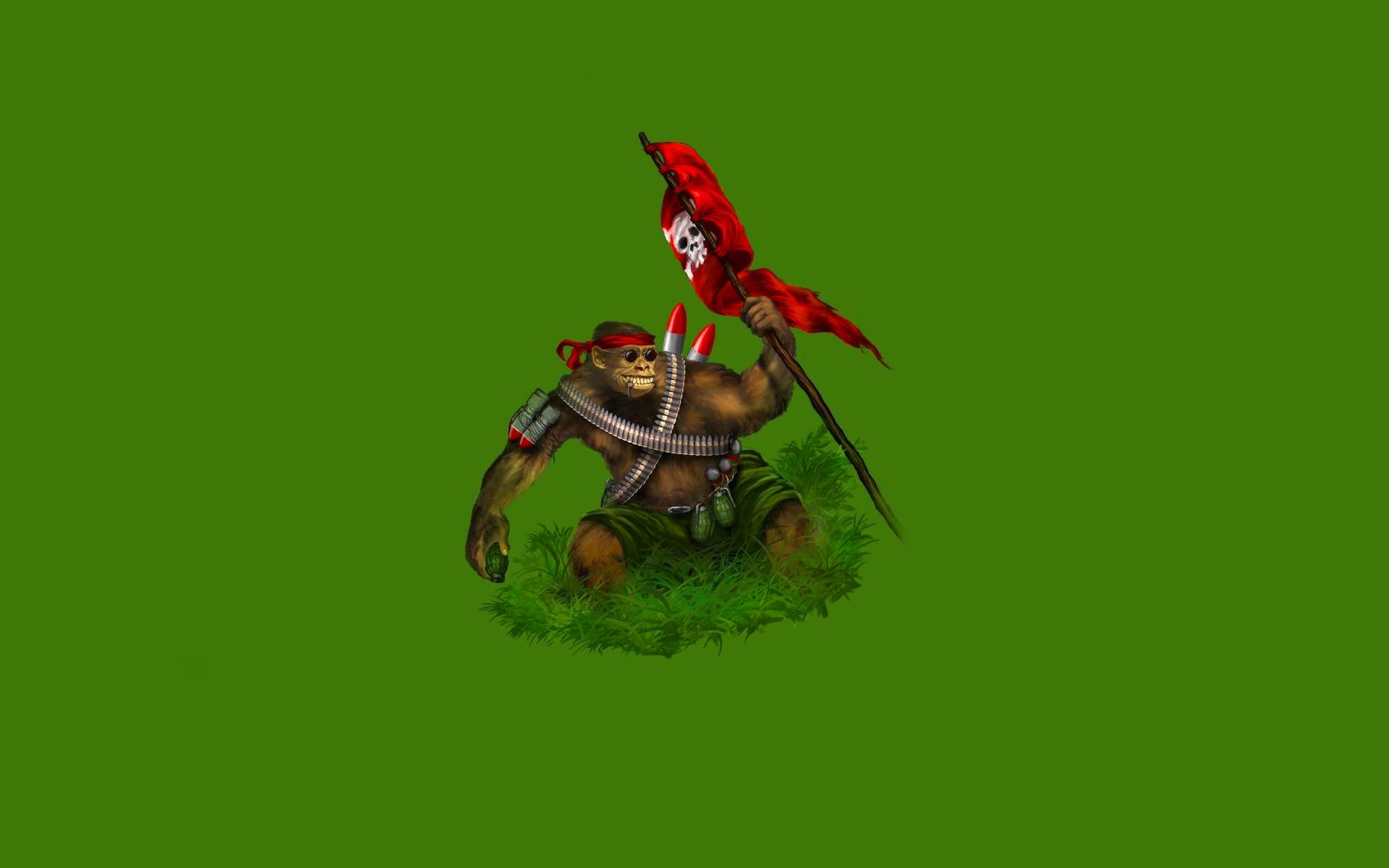 Affe mit Flagge und Munition auf grünem Hintergrund