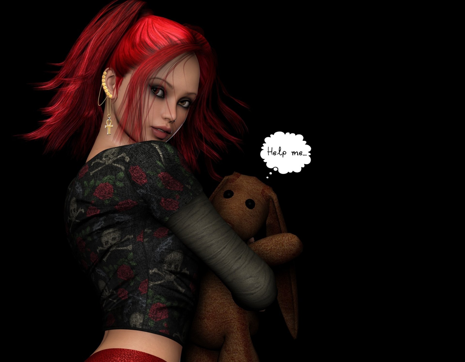 Ein grafisches Bild eines Mädchens mit roten Haaren, das einen Bären hält