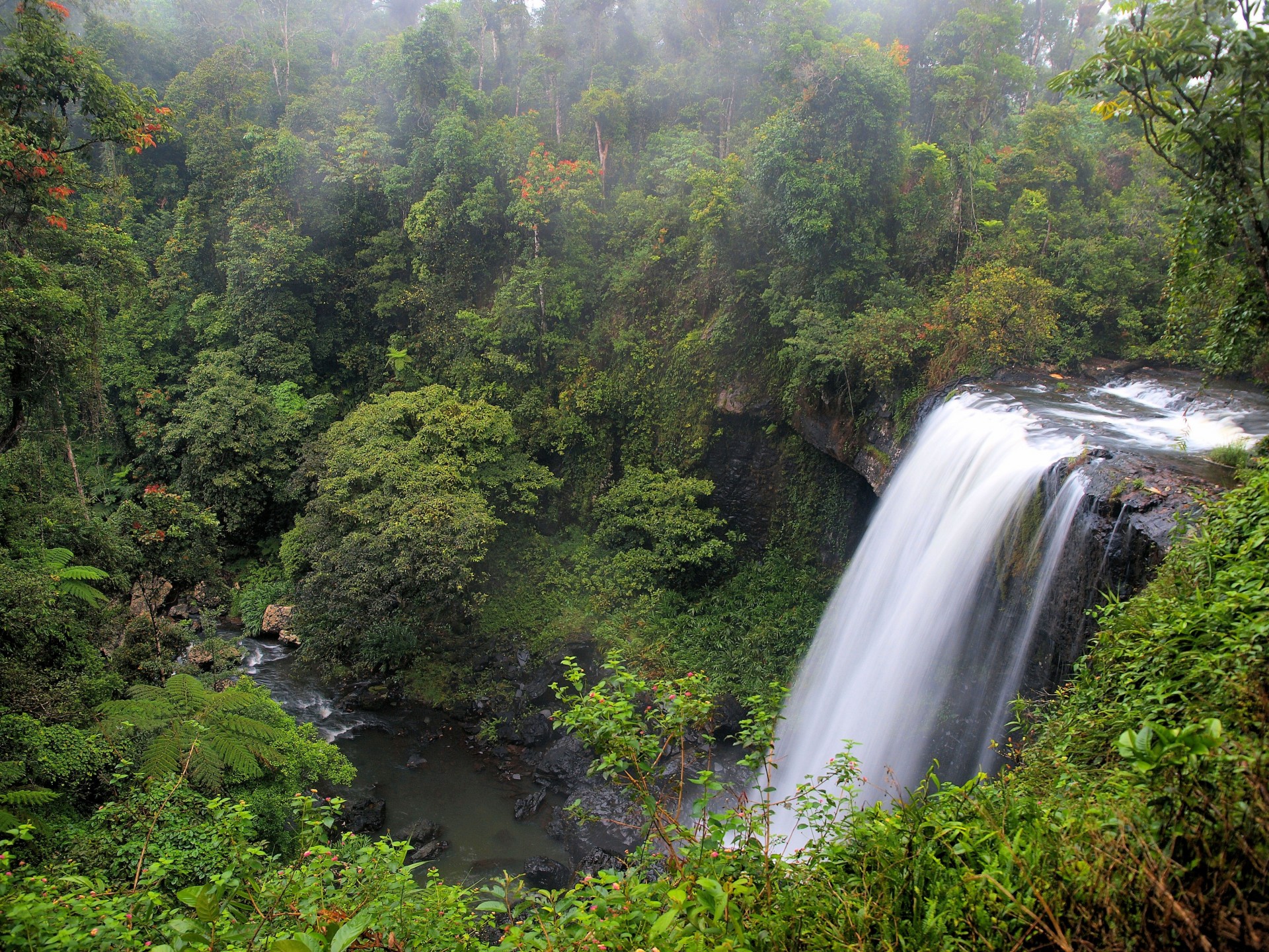 Ein schöner Wasserfall aus einer Felsenstadt mit schönen Wolken