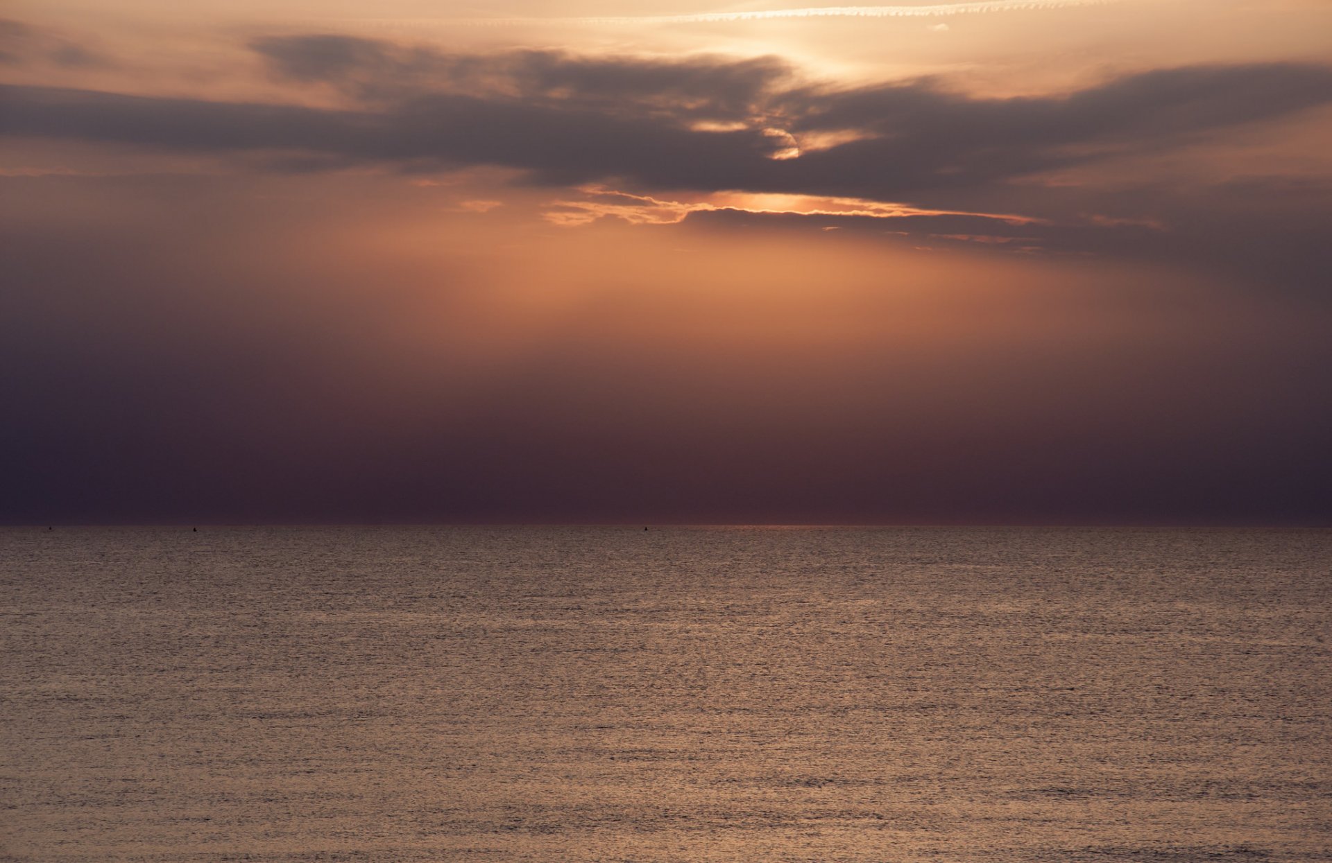 Die Sonnenstrahlen brechen am Meereshorizont auf
