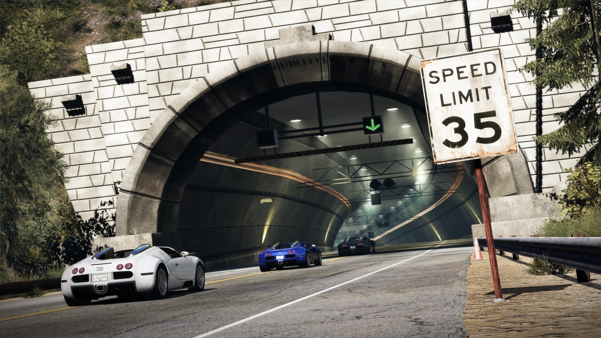 Straße, Tunnel und Rennwagen, die aus ihm herausfahren