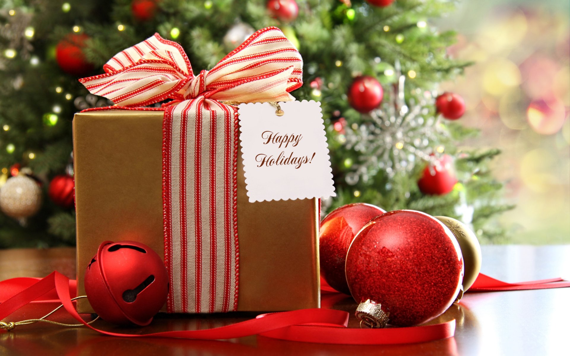 Girlanden und Weihnachtsschmuck mit roten Kugeln