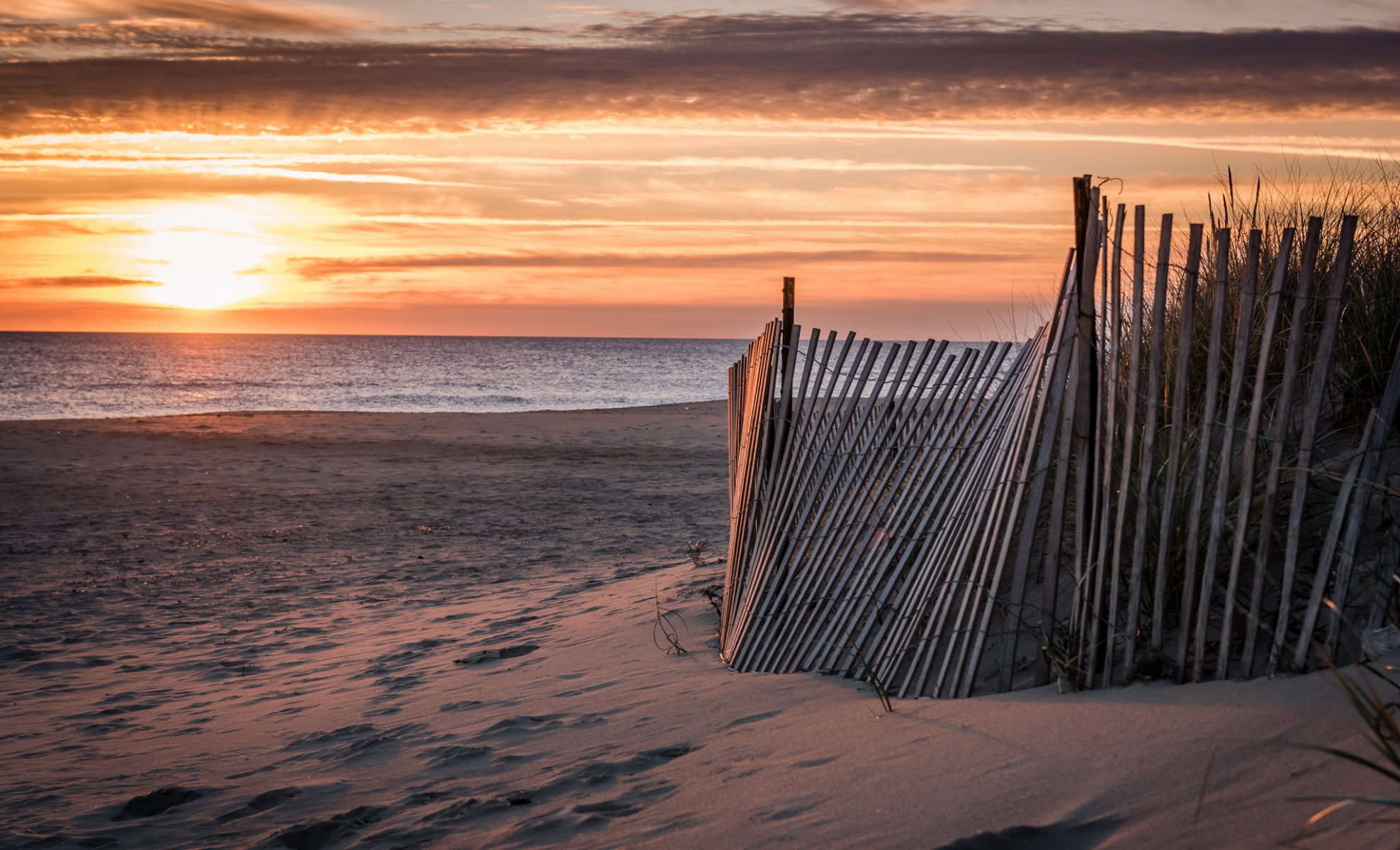 Die Stadt an der Küste in den Lichtern des Sonnenuntergangs