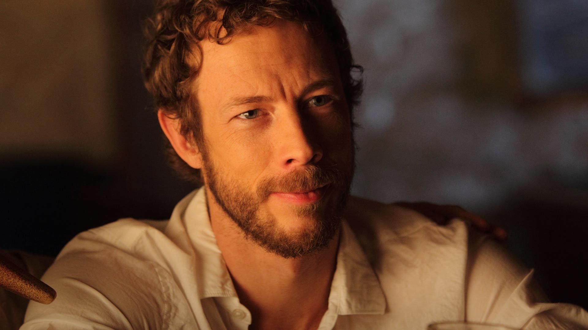 Kristen Holden sitzt in der Rolle eines Werwolfs mit schaum im Badezimmer