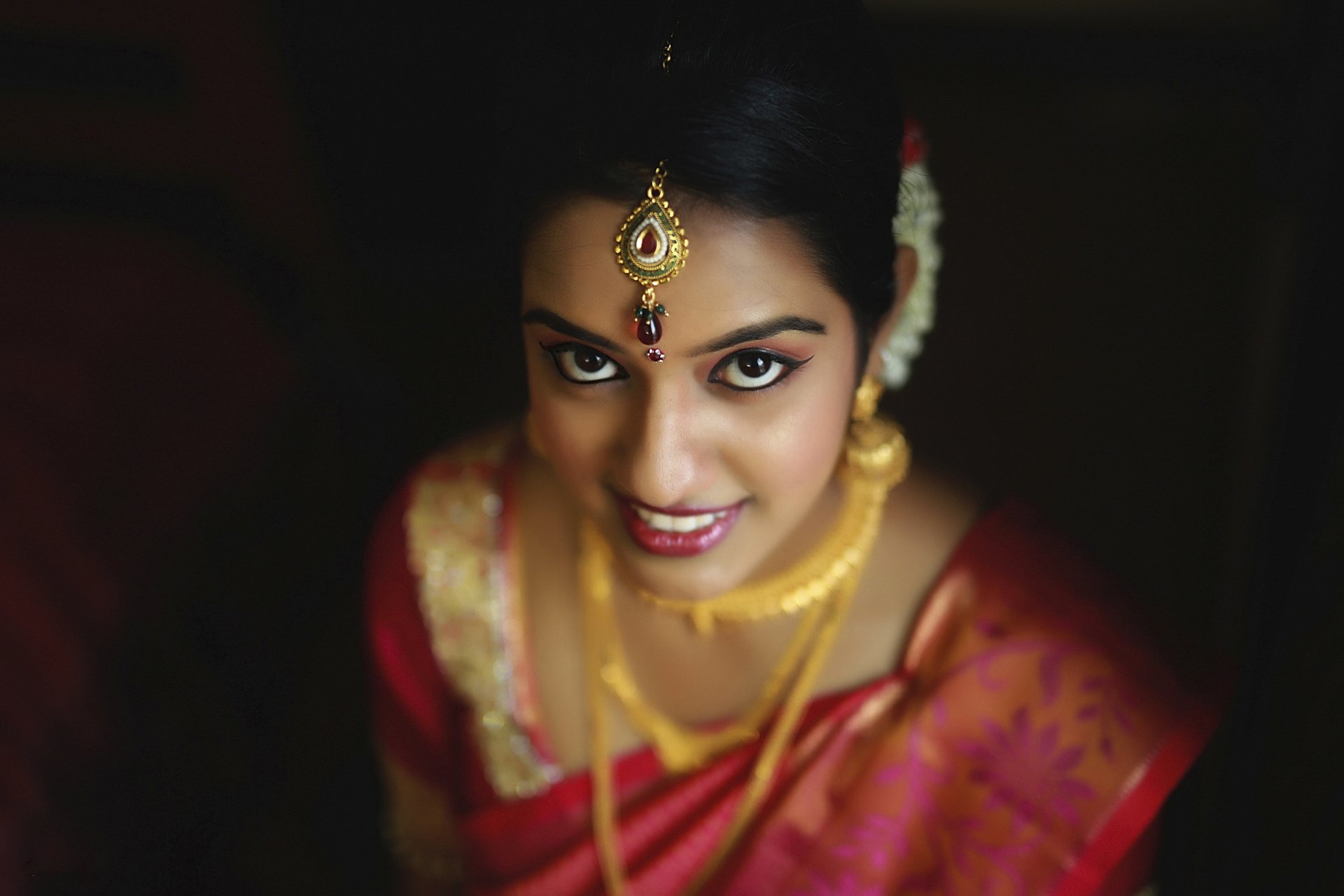 Mädchen mit lockeren Haaren und schönem Make-up in Farben
