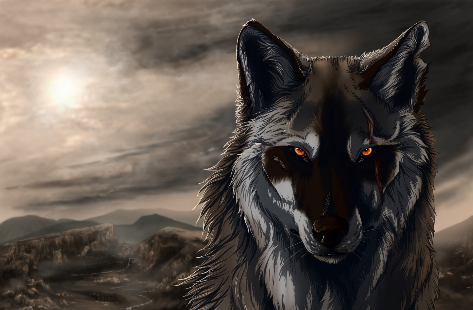 Eine ungewöhnliche Zeichnung eines Wolfes mit einem bedrohlichen Blick