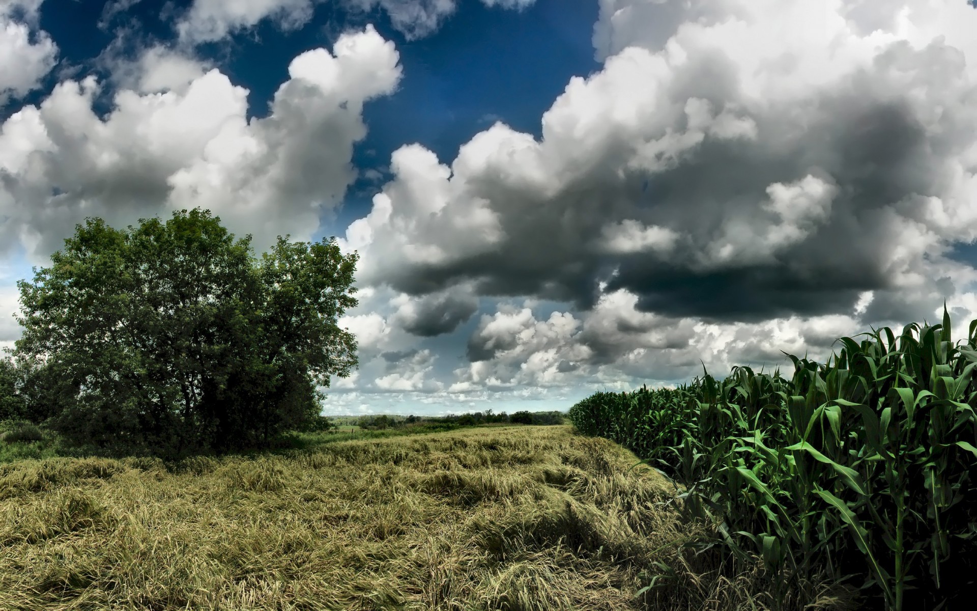 Maisfeld und Cumulus-Wolken