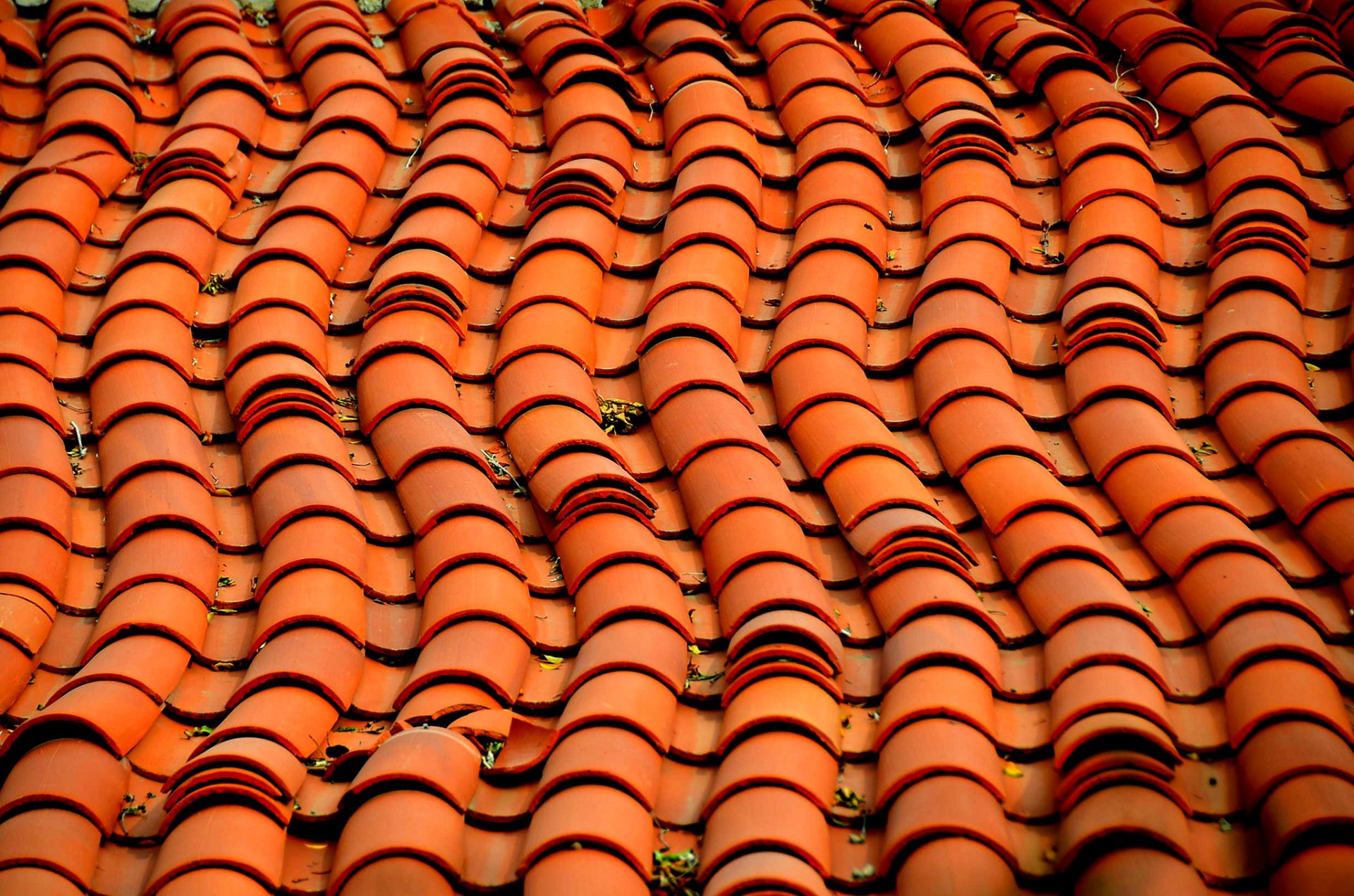 Auf dem Dach eines Hauses in Asien wachsen schönes Moos und Schindeln