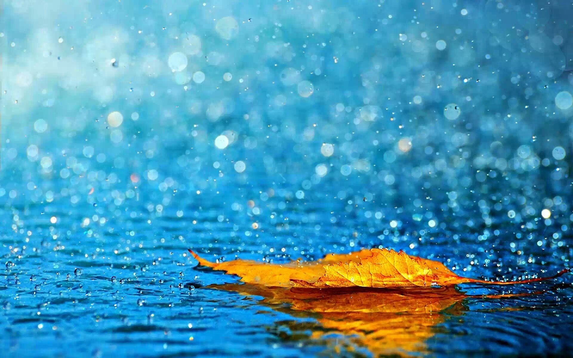 Gelbes Blatt, das auf sauberem Regenwasser schwimmt