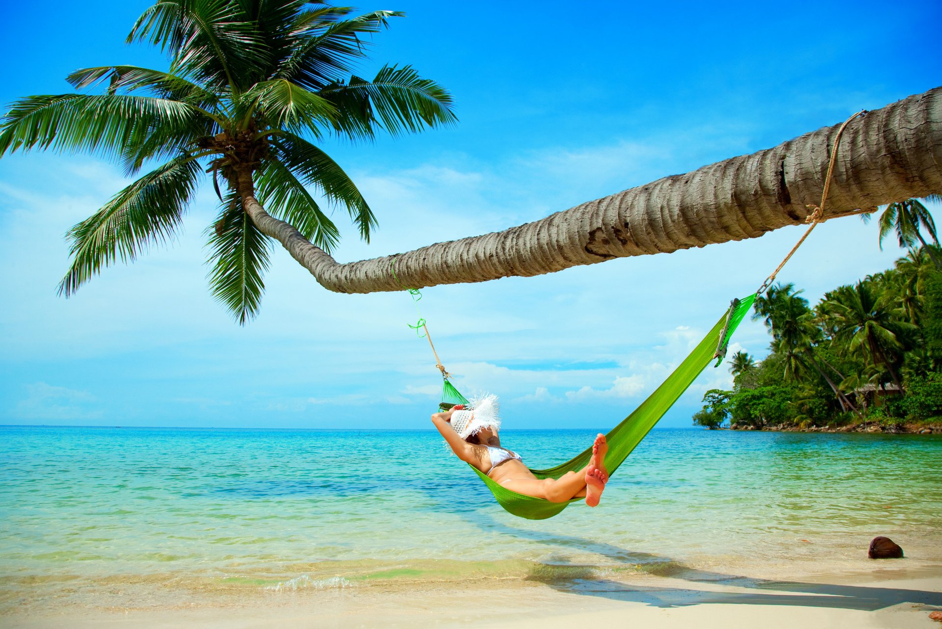 Das Meer, die Palmen und das Mädchen in der Hängematte