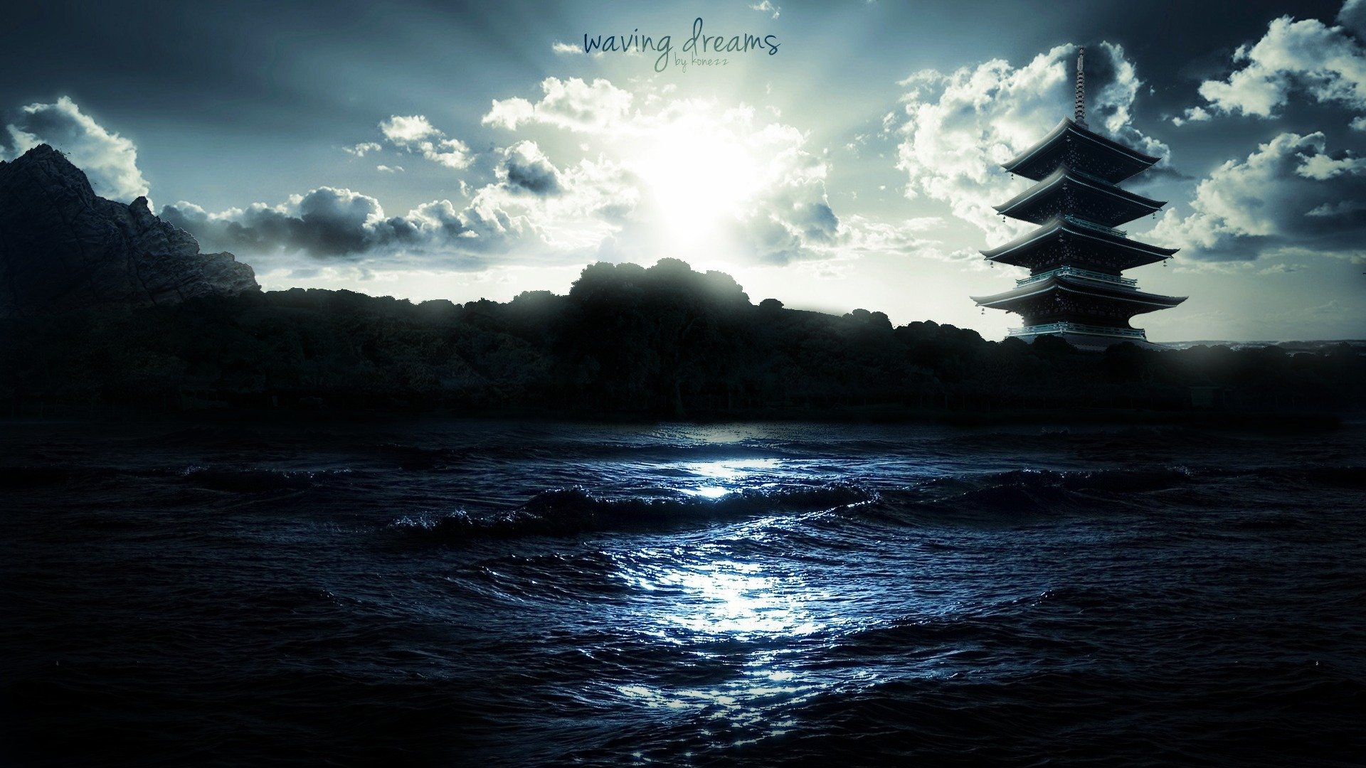 Helles Licht von Sonnenuntergang und oben auf Wolken