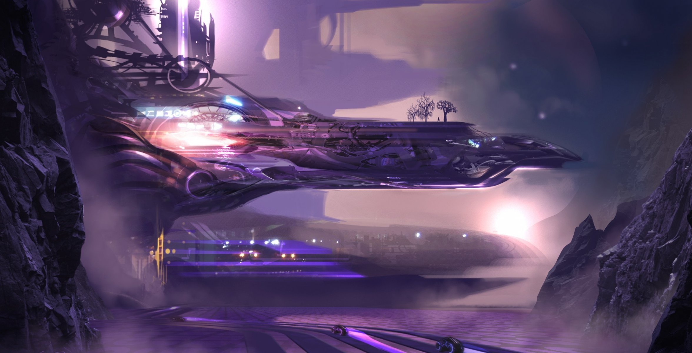 Zeichnung ein Fantasy-Schiff in den Himmel