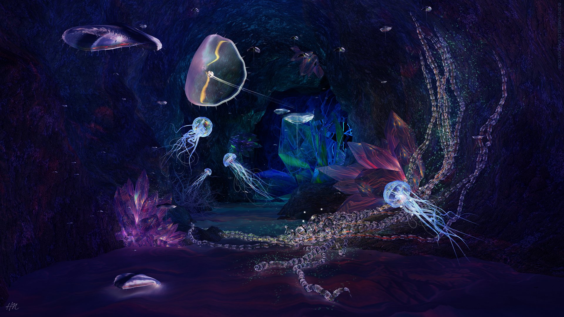 Nachtbeleuchtung über dem Meer und Opernhaus