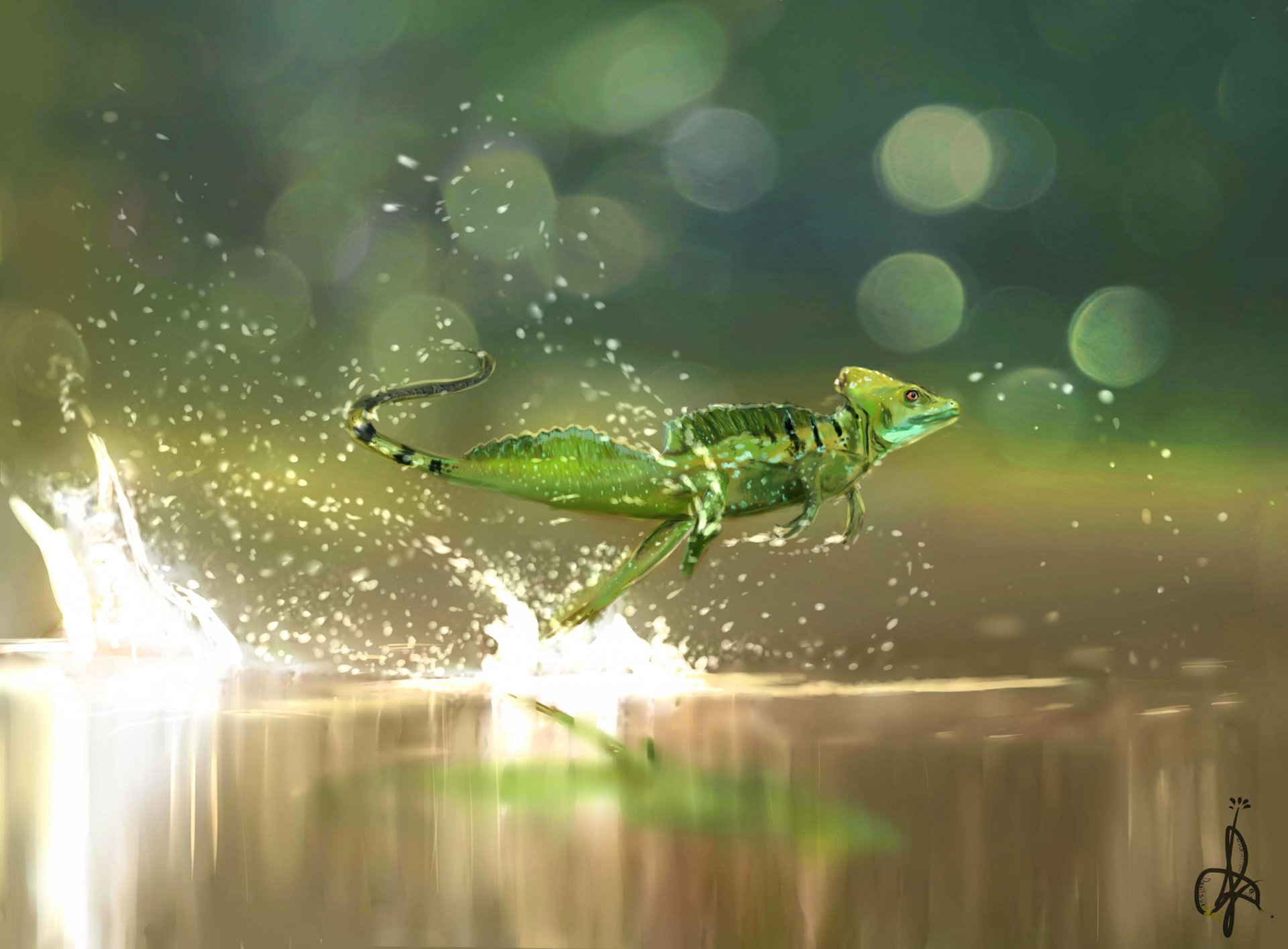 Schönheit der Eidechse in Bewegung vor dem Hintergrund der schönen Natur