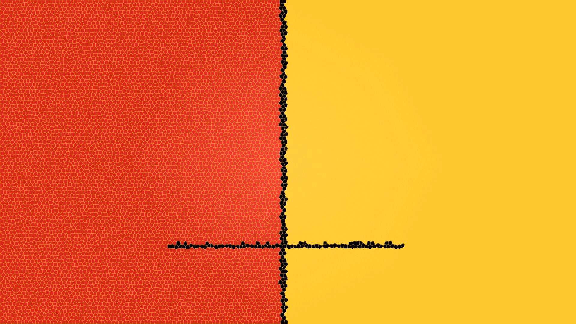 Die sich kreuzenden Farben Gelb und Orange werden durch einen schwarzen Zellstreifen getrennt