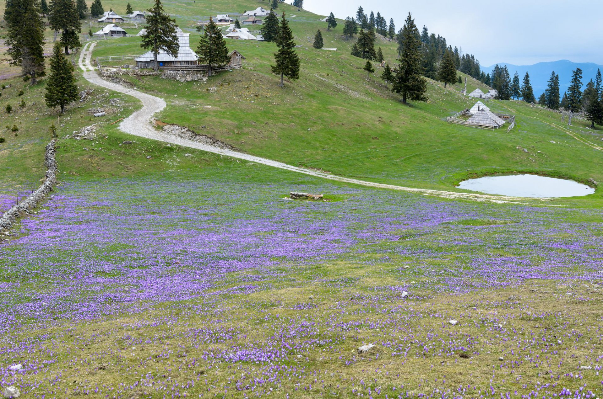 Ein Dorf auf den Hügeln im Frühjahr in Rumänien