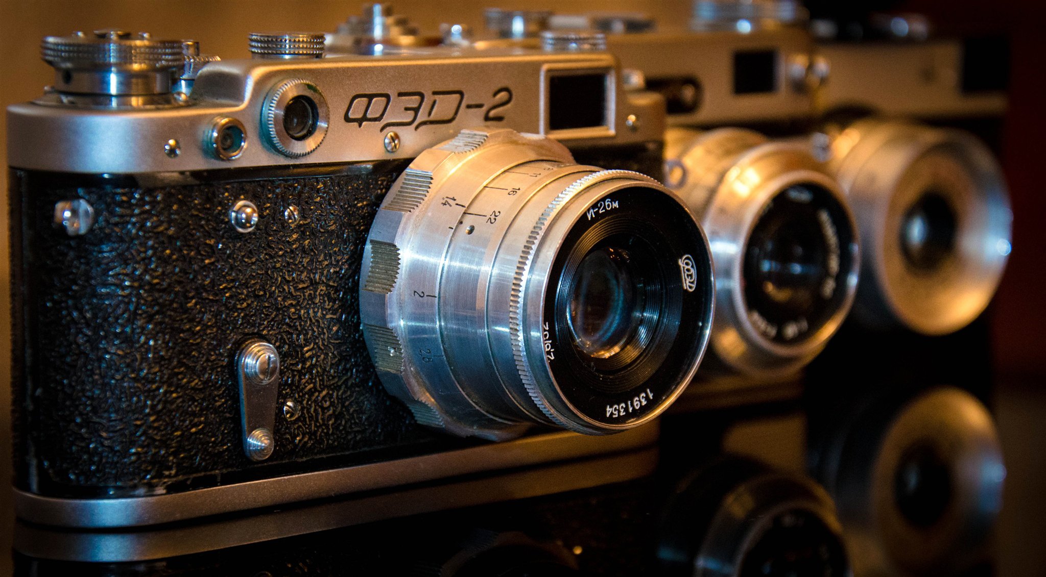 FED-Kameraobjektive in drei Variationen