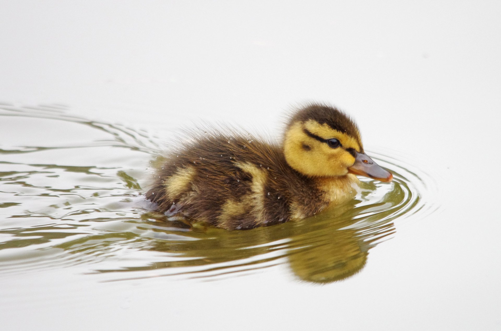 Ente mit roter Schleife auf der Brust auf hellem Hintergrund