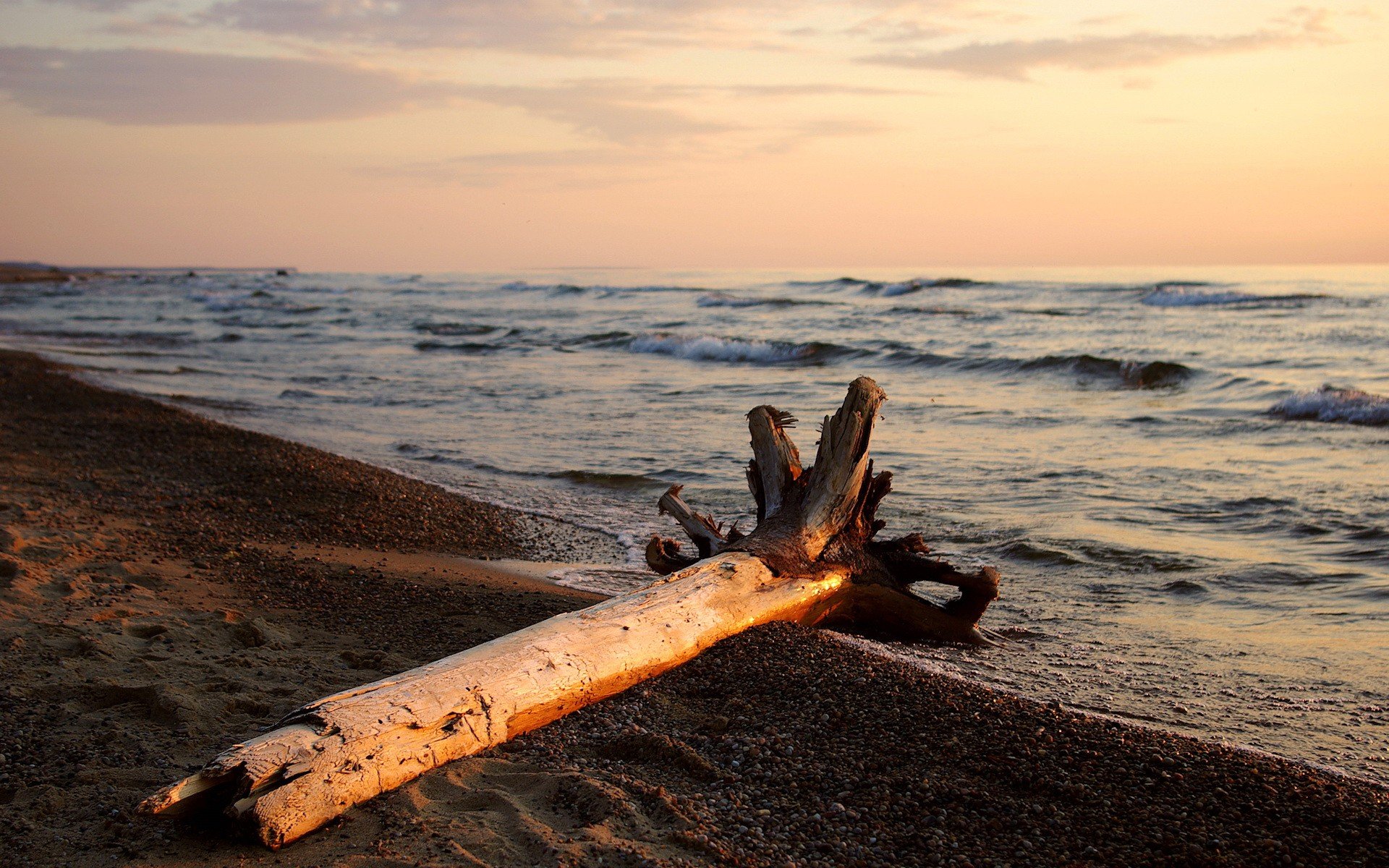 Ein einsamer Baum spiegelt sich im Wasser wider, das durch den Sonnenuntergang gefärbt ist