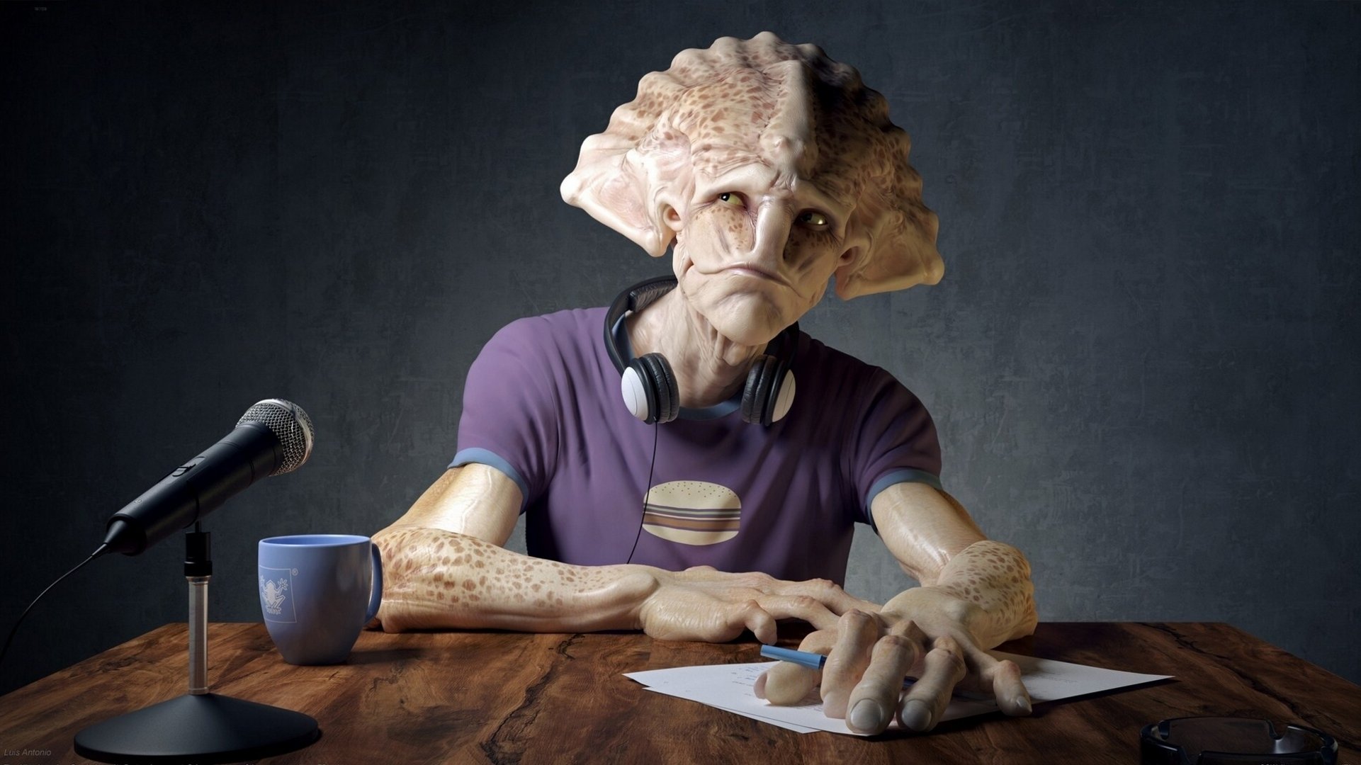 Der außerirdische Luis Antonio dachte über ein Blatt Papier nach