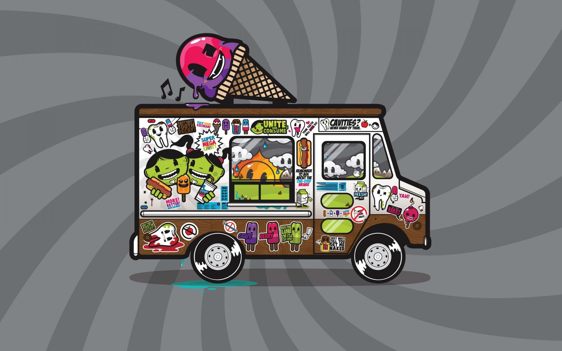 Weißer LKW schleicht sich durch das Eis vor dem Hintergrund des Nachthimmels