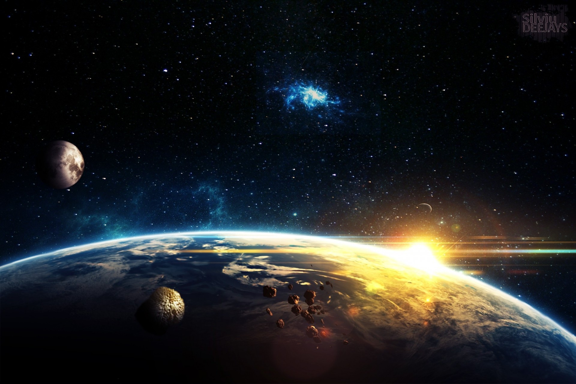 Die Erde und der Mond sind zwei Freundinnen, deren Sterne leuchten