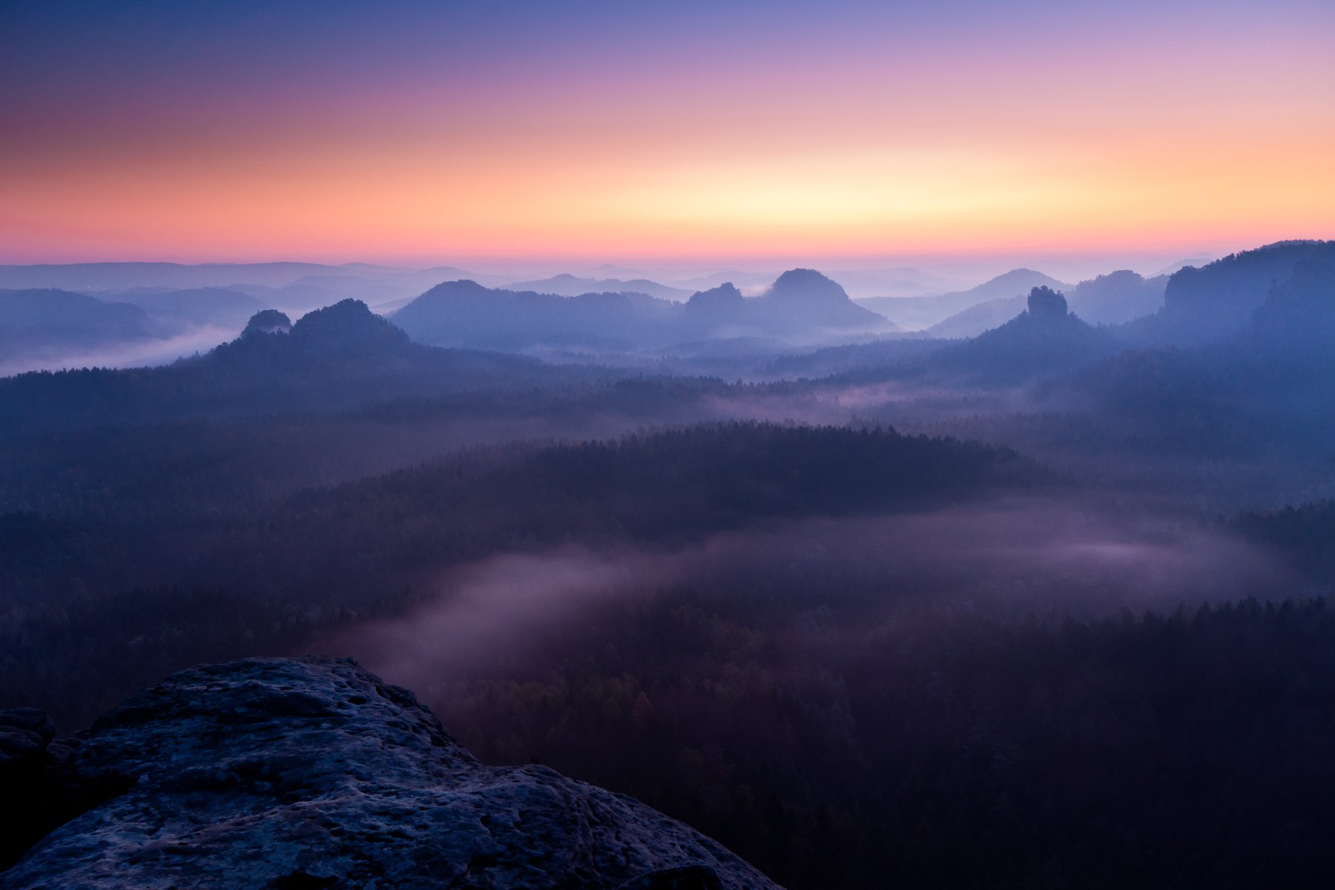 Ruhige Berge vor dem Hintergrund der Morgendämmerung