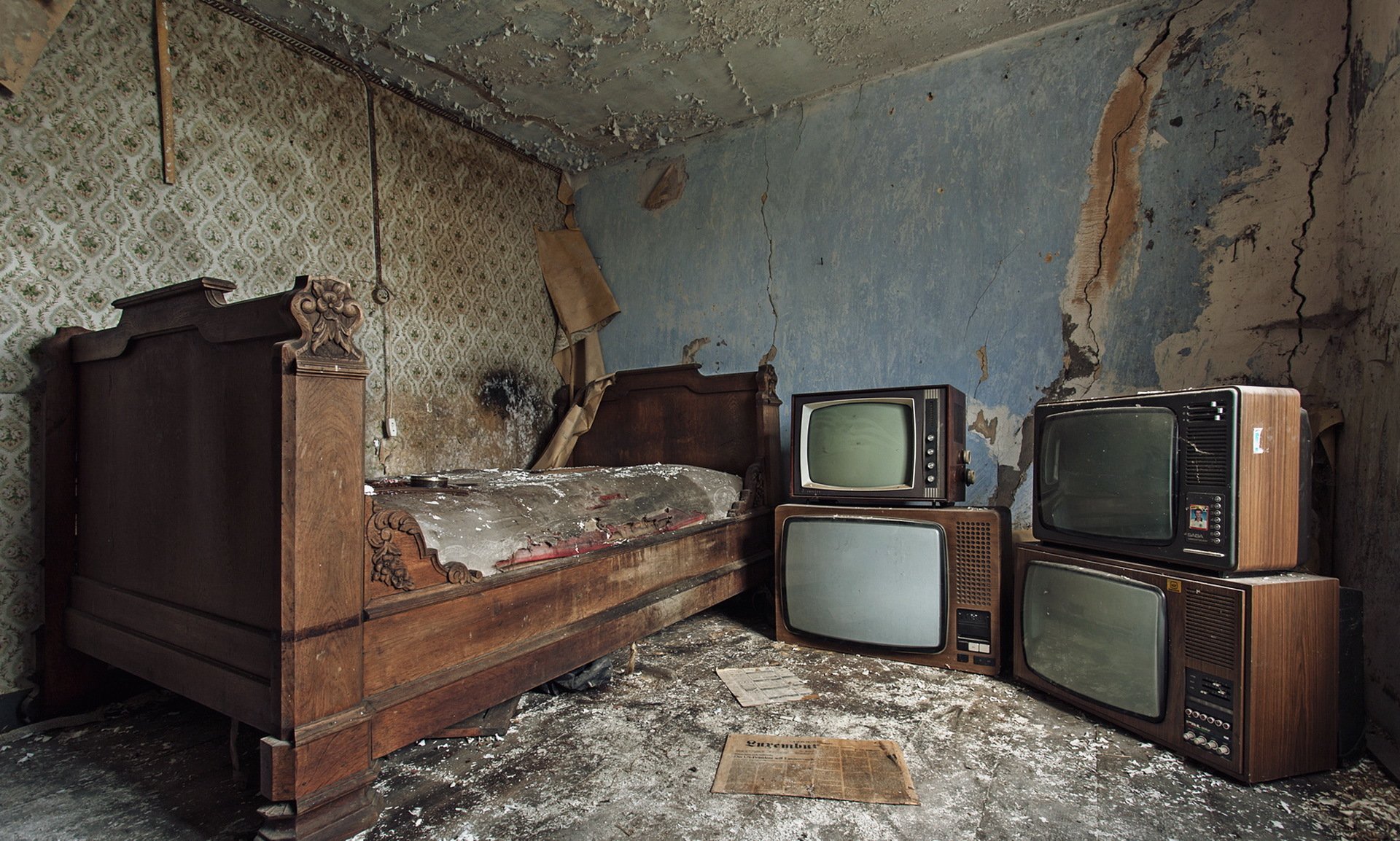 Es gibt vier Fernseher, hinter denen der Obom montiert ist