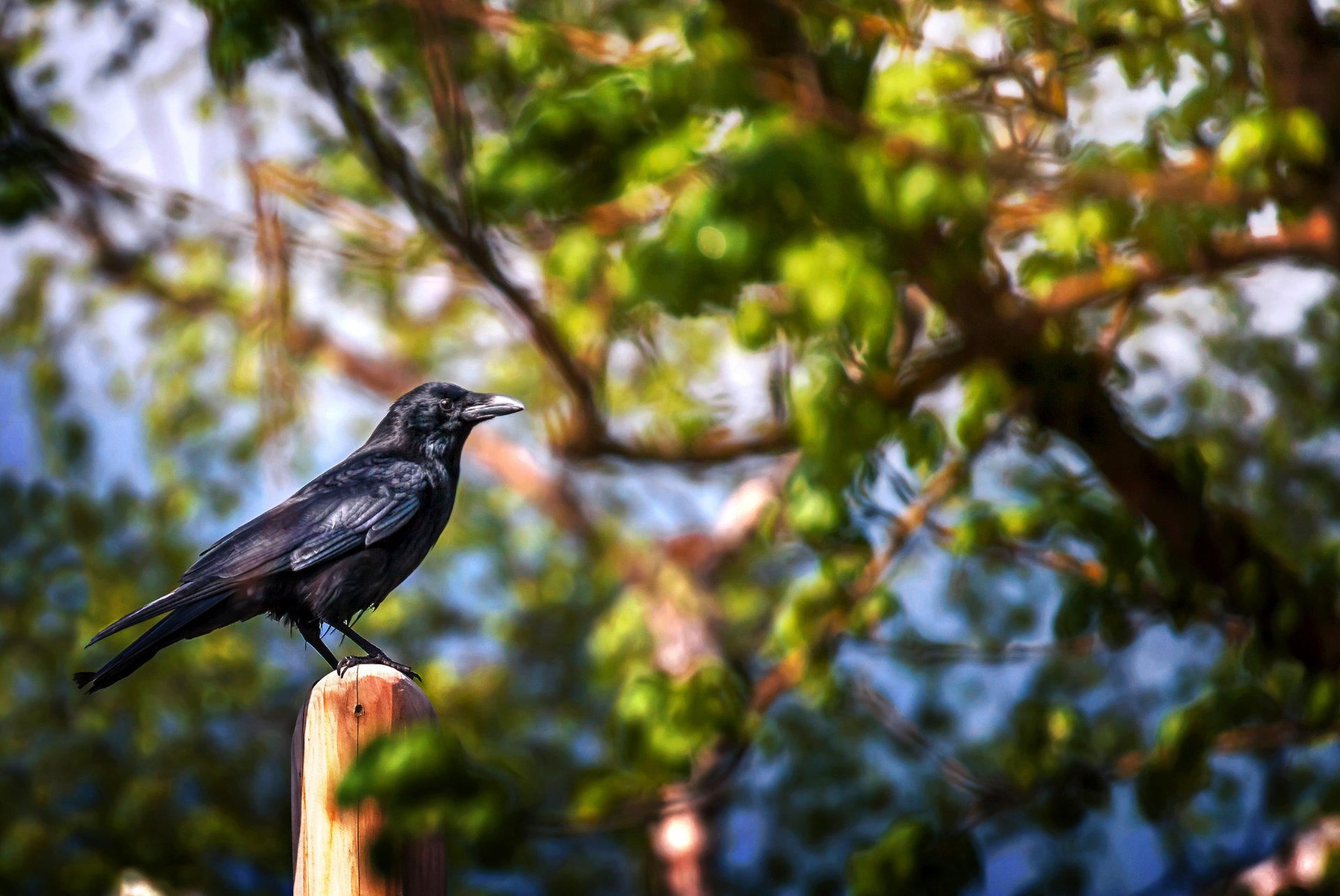 Vogel auf einem Ast mit Laub in Bearbeitung