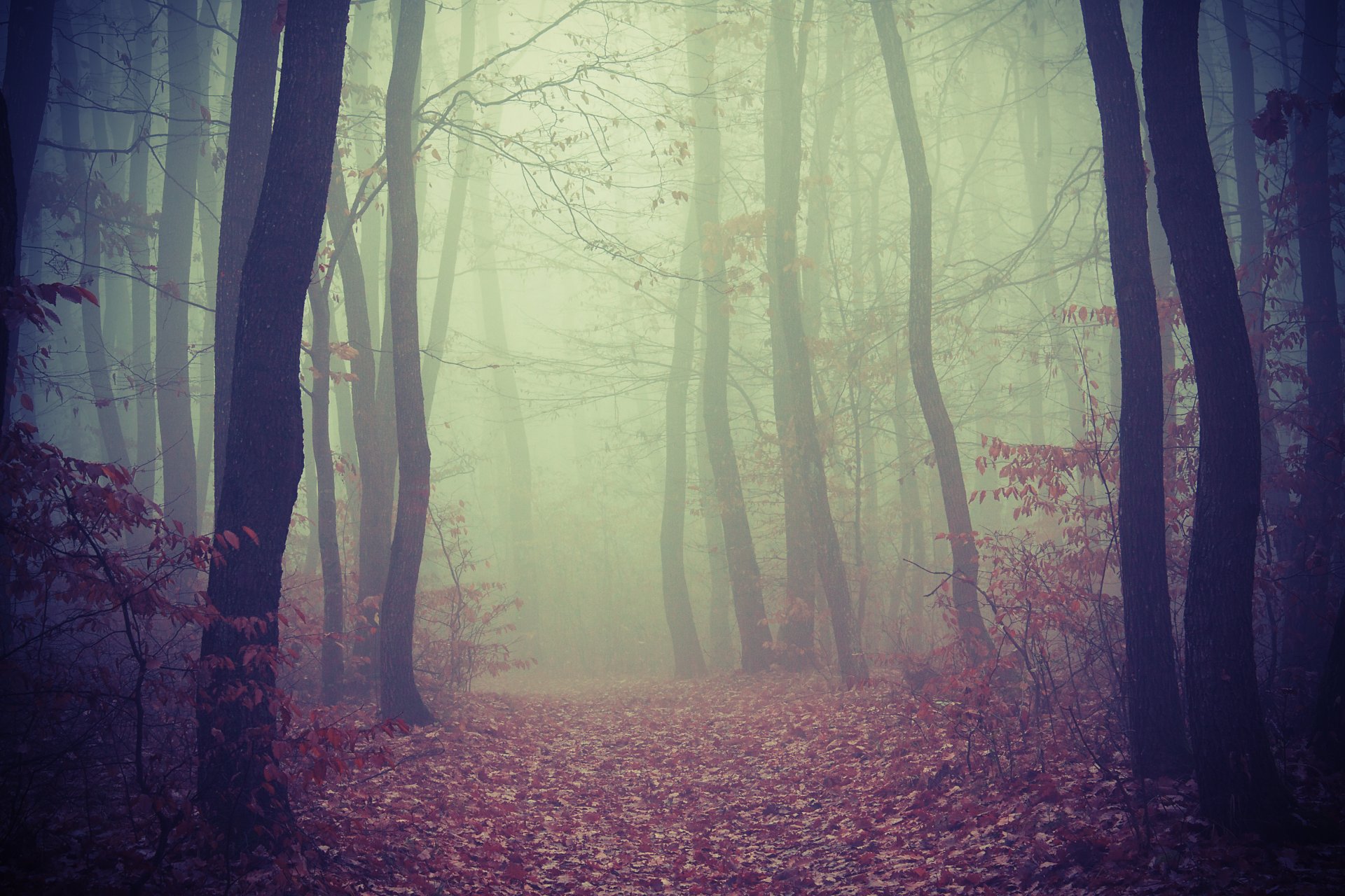 Nebelwald mit Herbstweib